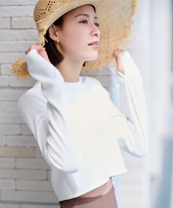 トップスはすっきりとしたシルエットで、動きやすく、日差し対策にも嬉しい長袖仕様。