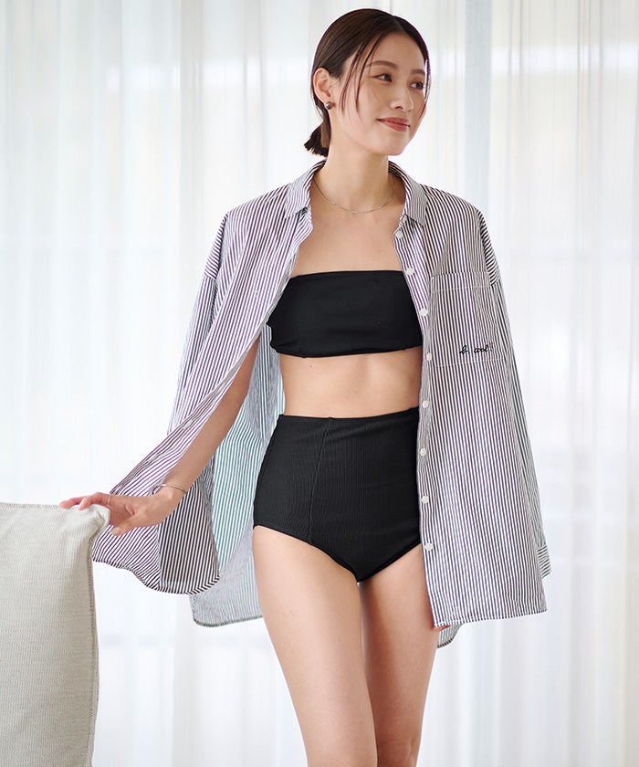 ショーツはハイウエストデザインで腰まわりをしっかりカバーし、バランスよくスタイルを整えます。