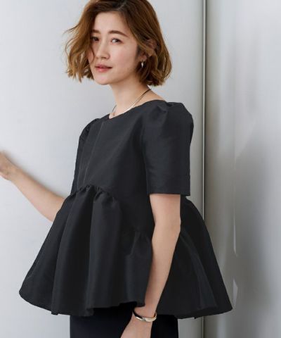 ウエスト位置で切り替え、たっぷりとギャザーを寄せることで、ふんわりと立体的なペプラムラインを描くデザインに仕上げました。