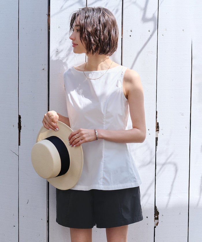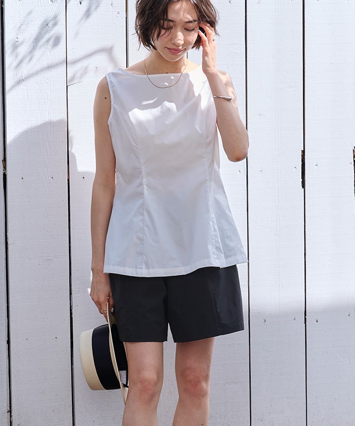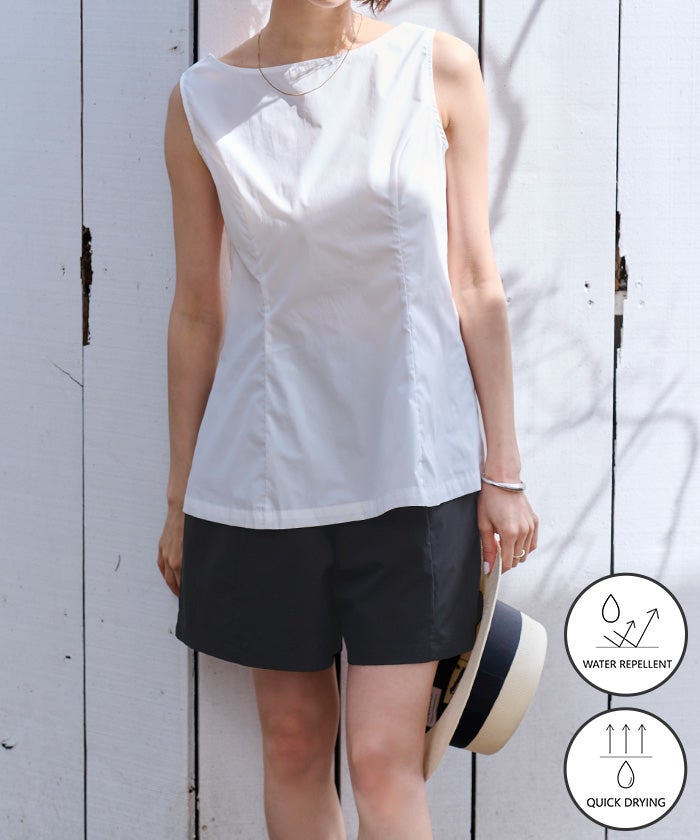 撥水クルーネックノースリーブブラウス/ラッシュガード