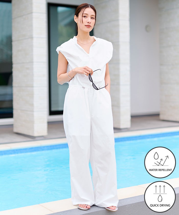 一枚でスタイリングが決まる、きれいめな印象のオールインワンラッシュガード。