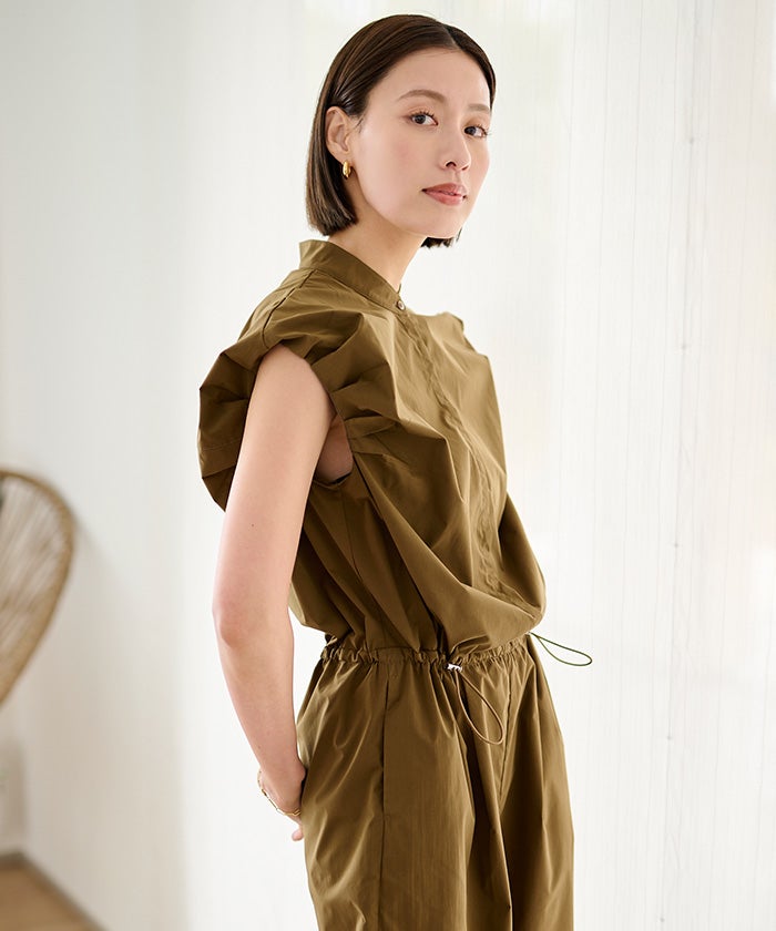 ウエストはドローストリング仕様で、シルエットの調整ができるのもポイント。