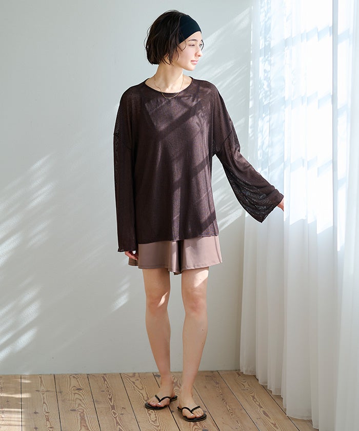 UPF50+の素材を使用しており、紫外線対策もばっちり。ビーチやアウトドアシーンにもぴったりです。