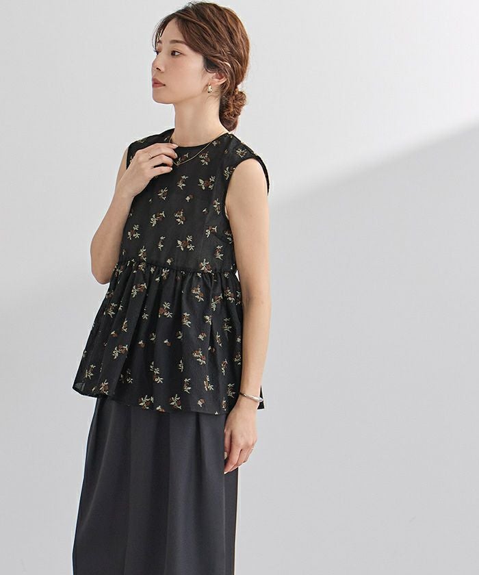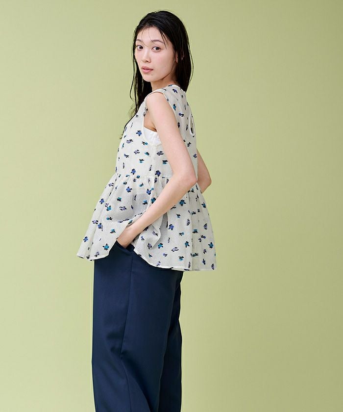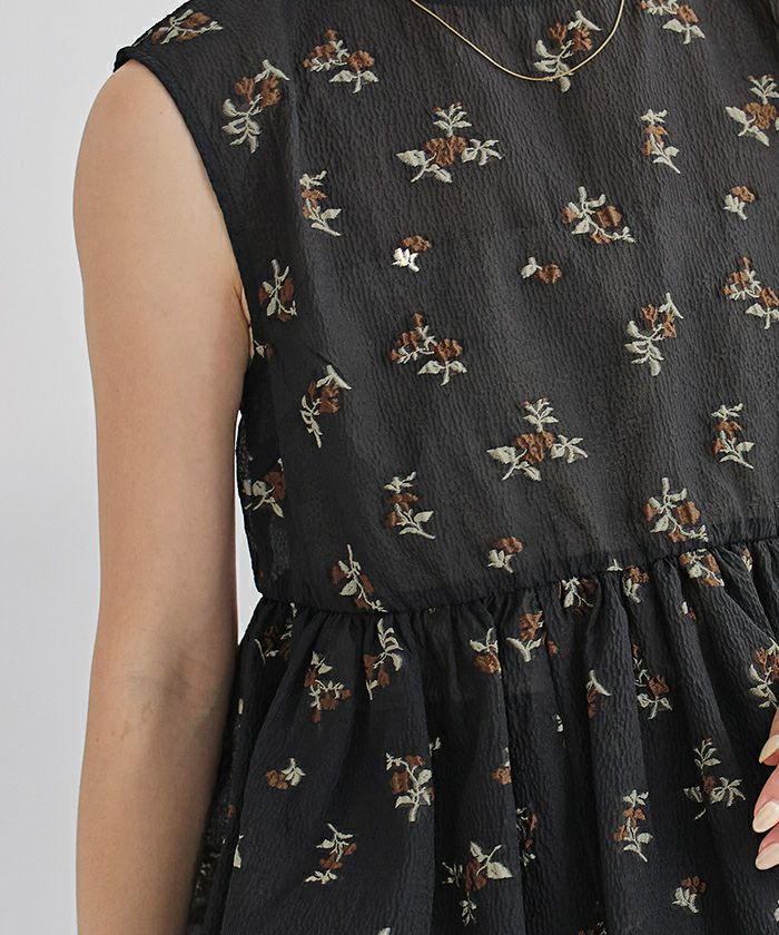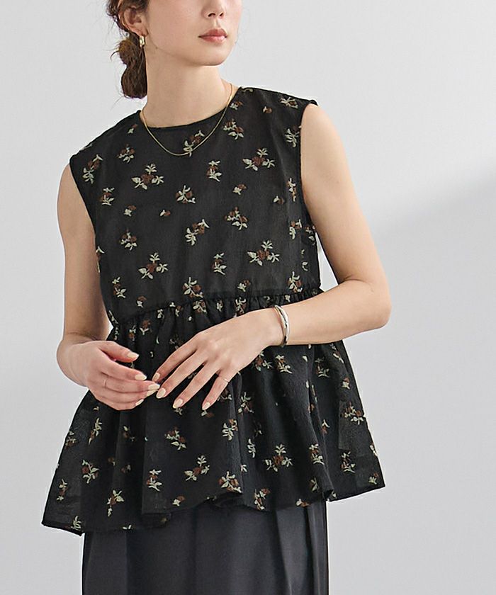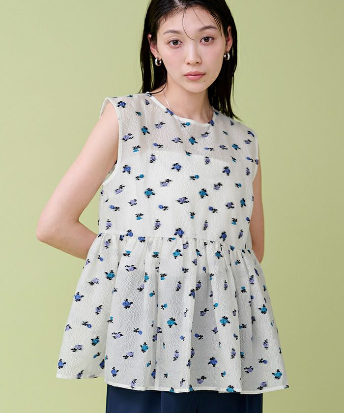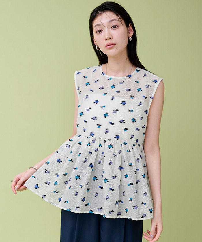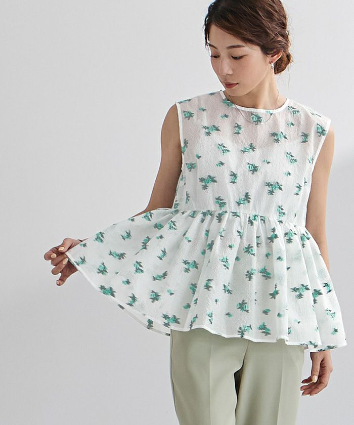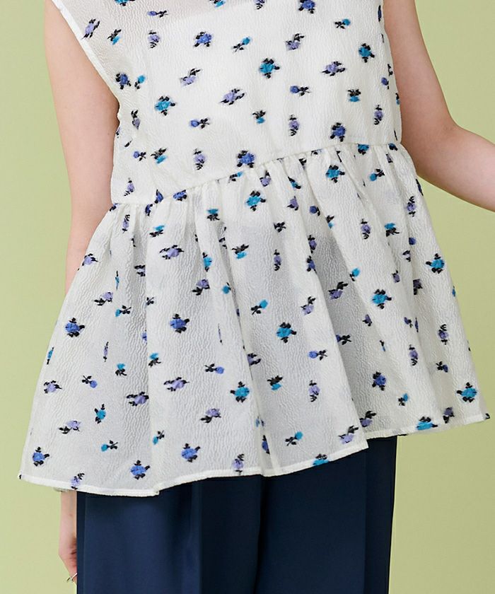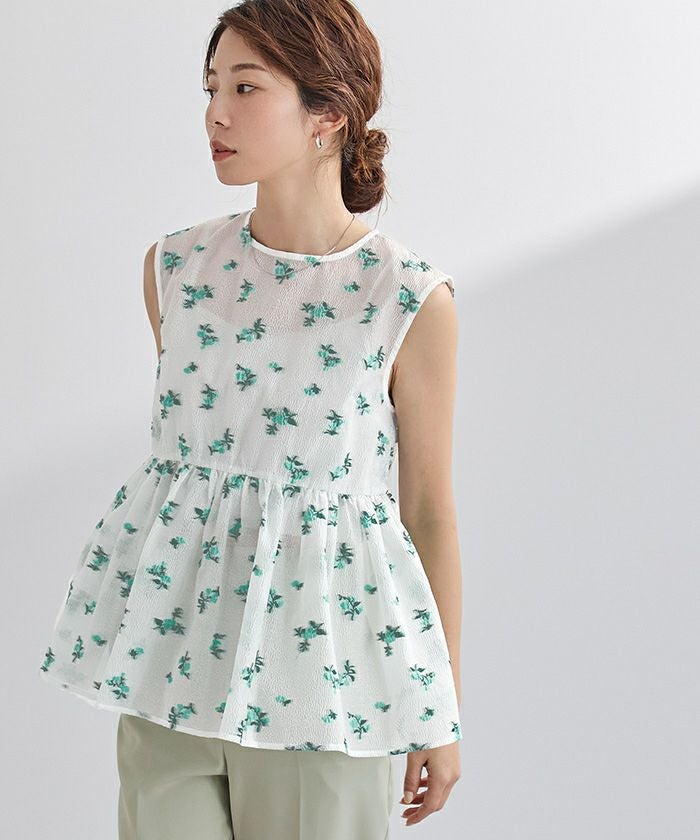 小花柄のシアー素材を使用した、軽やかでフェミニンなブラウス。