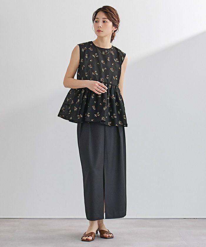 ウエスト切替から広がるペプラムシルエットで、自然なスタイルアップ効果も期待できます◎
