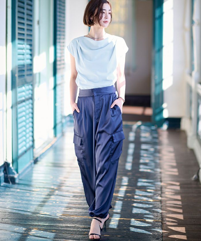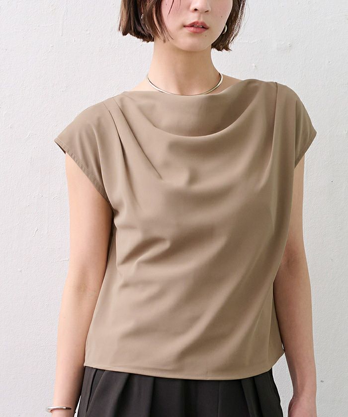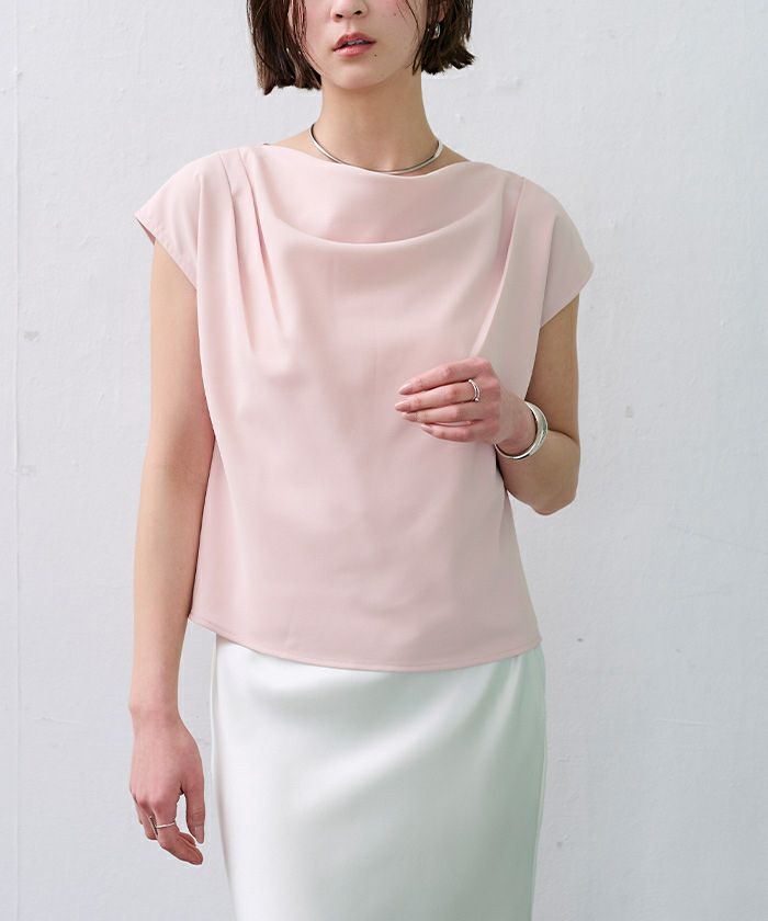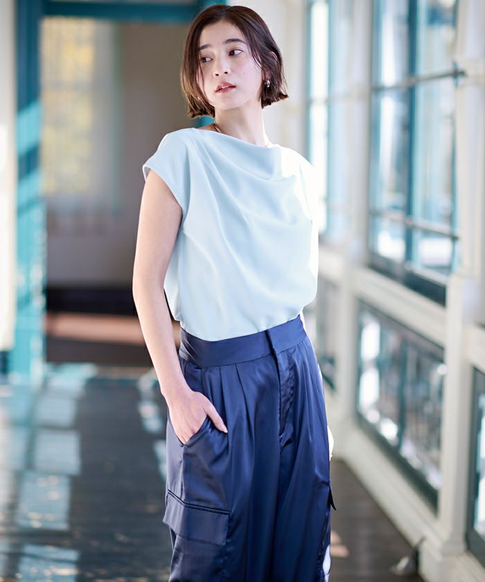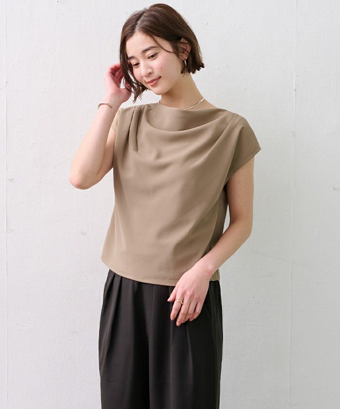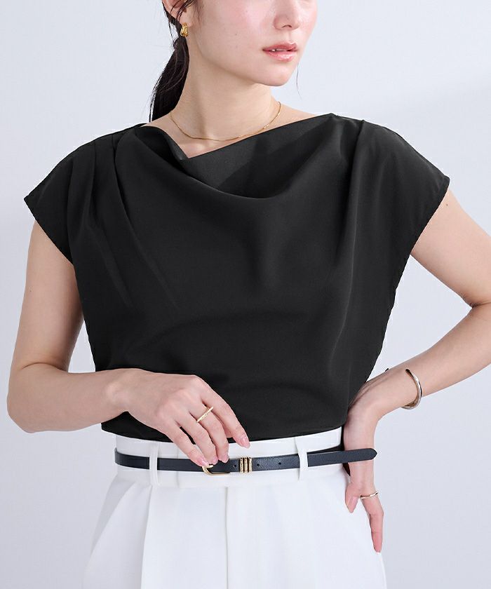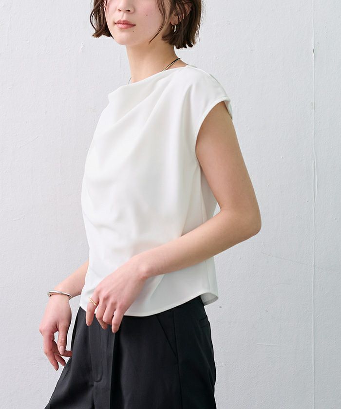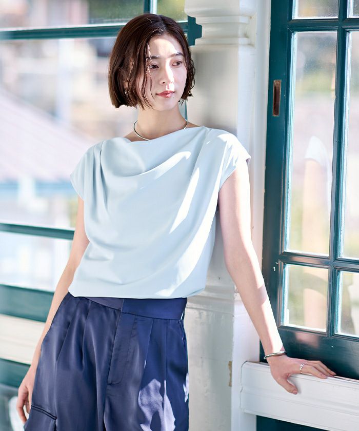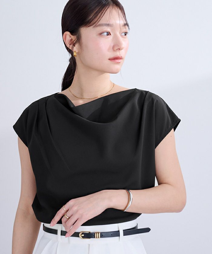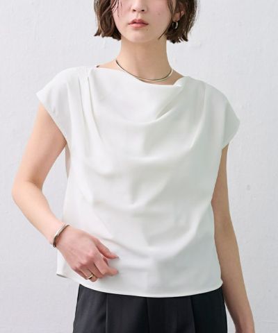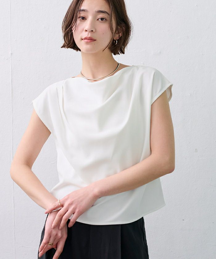 フロントの上品なドレープが、シンプルながら女性らしい印象を与えます。