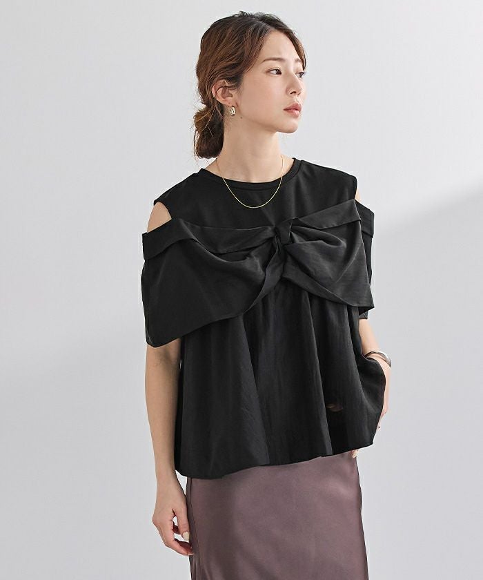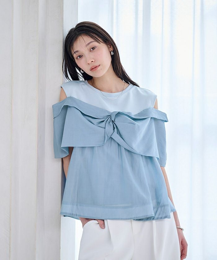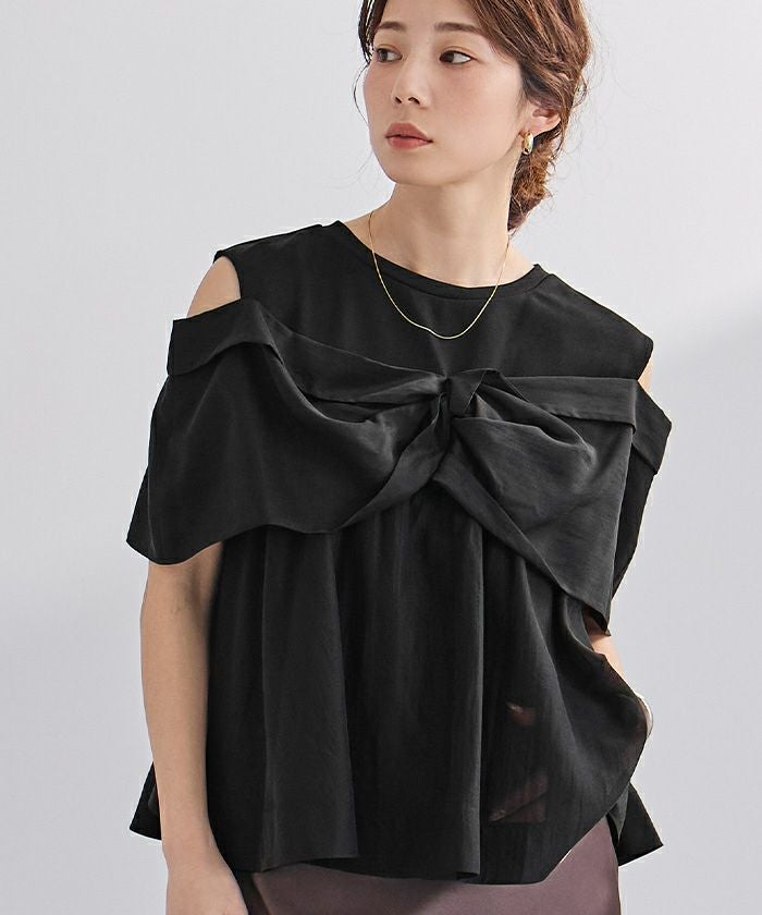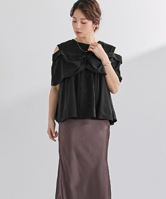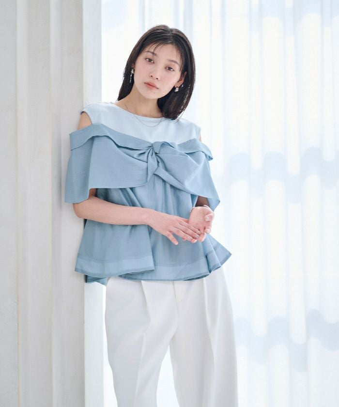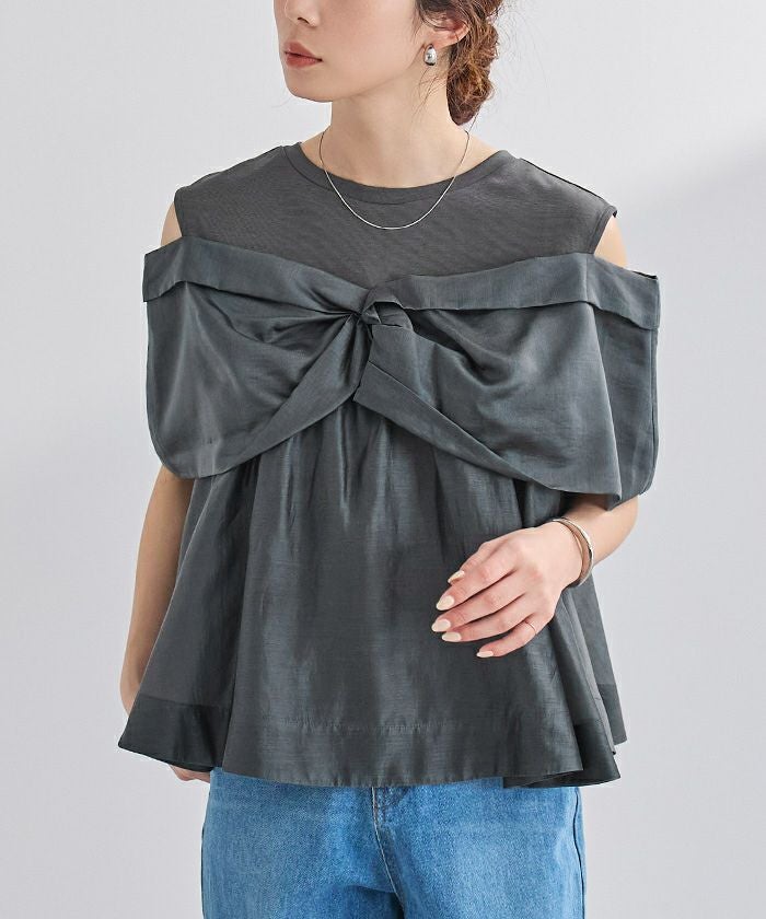 フロントのノットデザインが目を惹く、存在感のあるトップス。