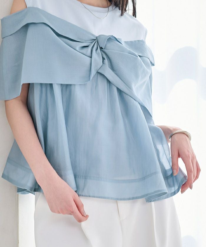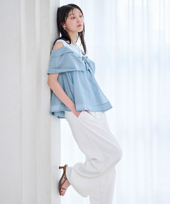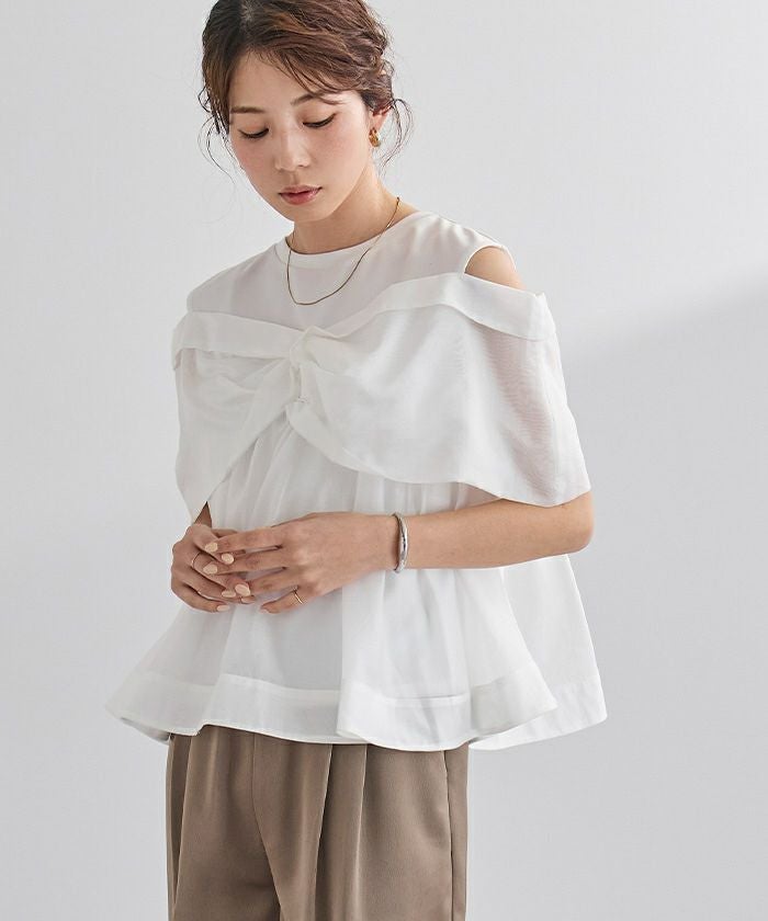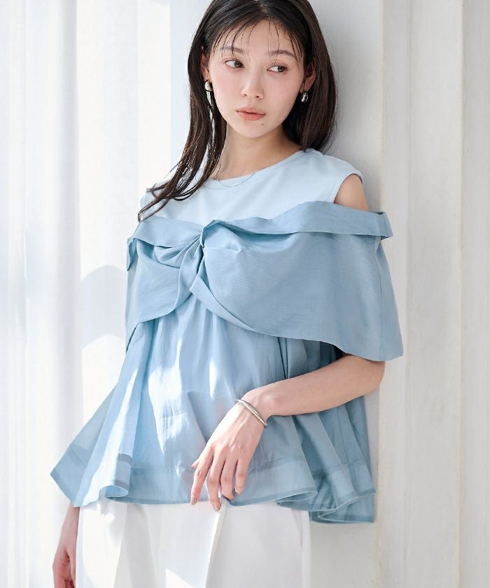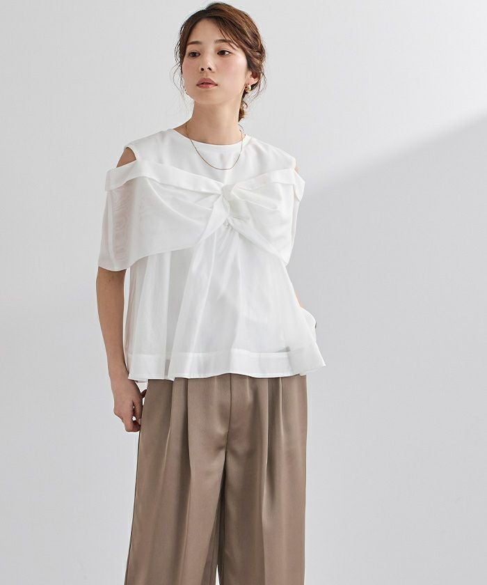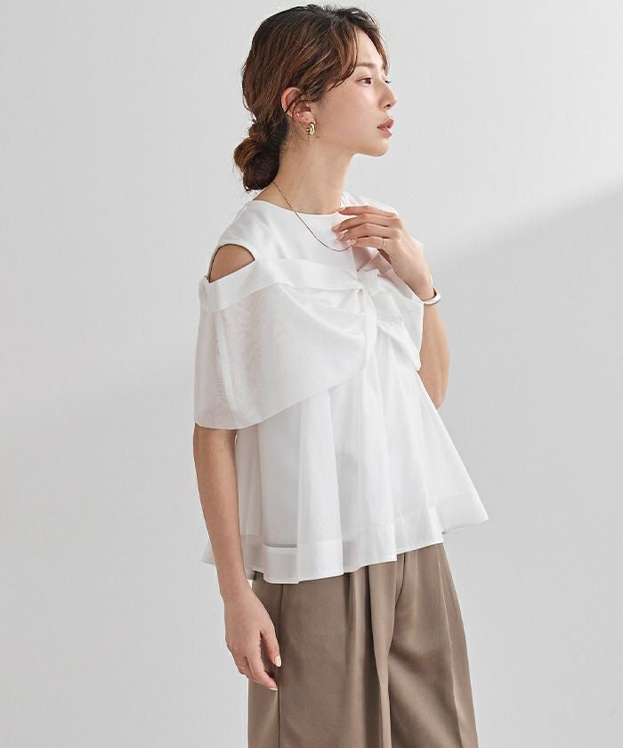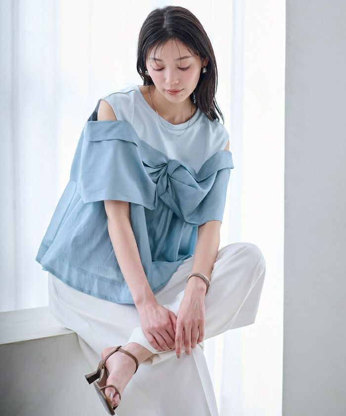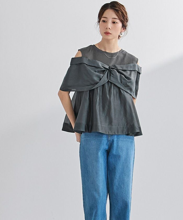 さらっとした肌触りのカットソー素材に、軽やかなシアー素材を組み合わせました。
