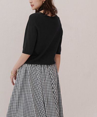 ・トップスとしてはもちろん、ジャケット下のインナーやアンサンブルスタイルにも活用できる5分袖ニットプルオーバー。