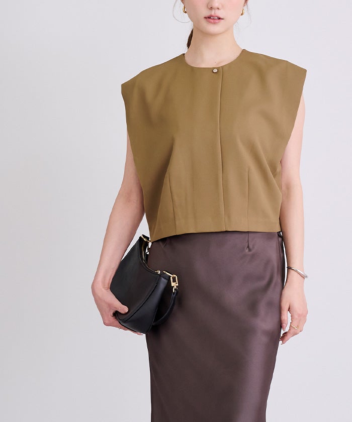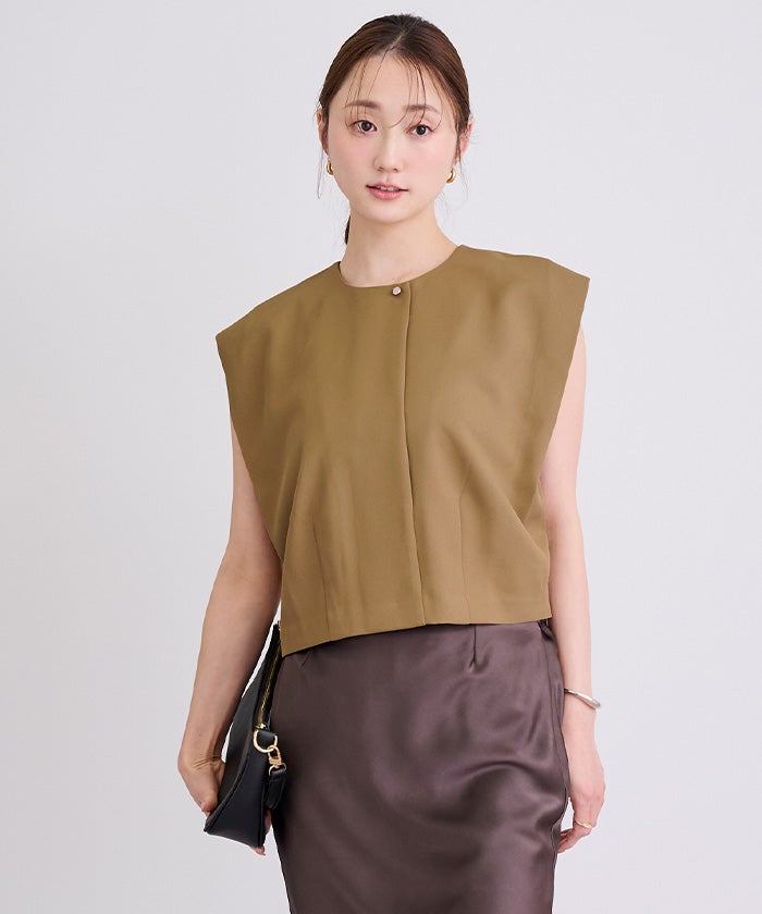 他の画像を見る 【新作★期間限定15%OFF★27日11時カラオフィスカジュアルアイテム】【セットアップ可能】 美ツイルノースリーブジャケットジレ 定価 ¥ 7,469 のところ 価格 ¥ 6,348 税込 販売開始前です。 販売期間 2026/03/27 11:00 〜 2026/04/03 10:59 お気に入りに登録する