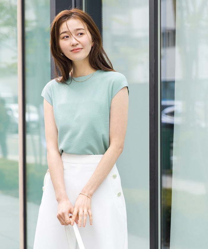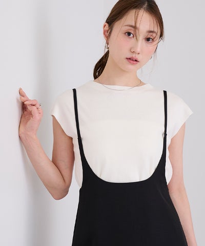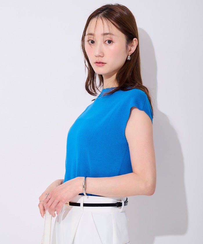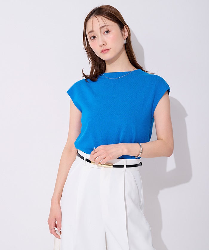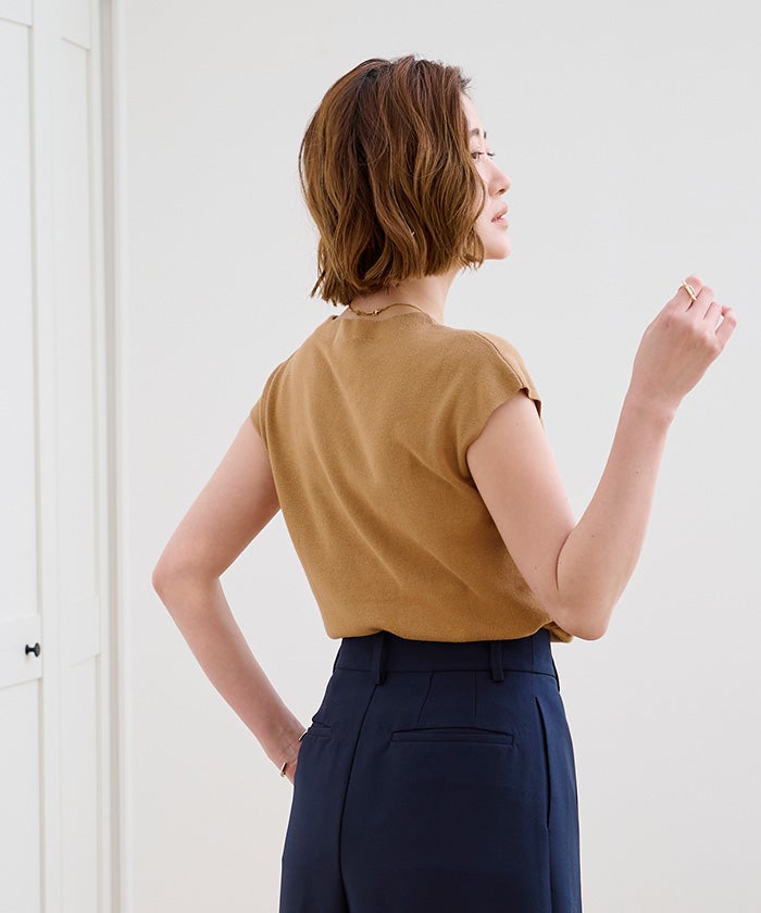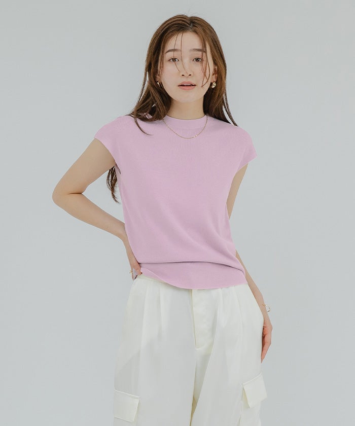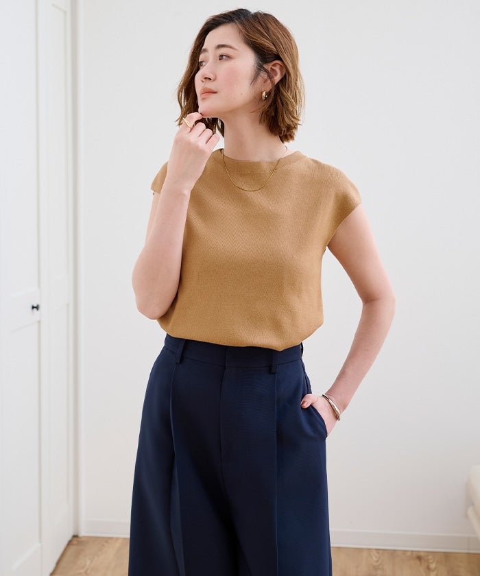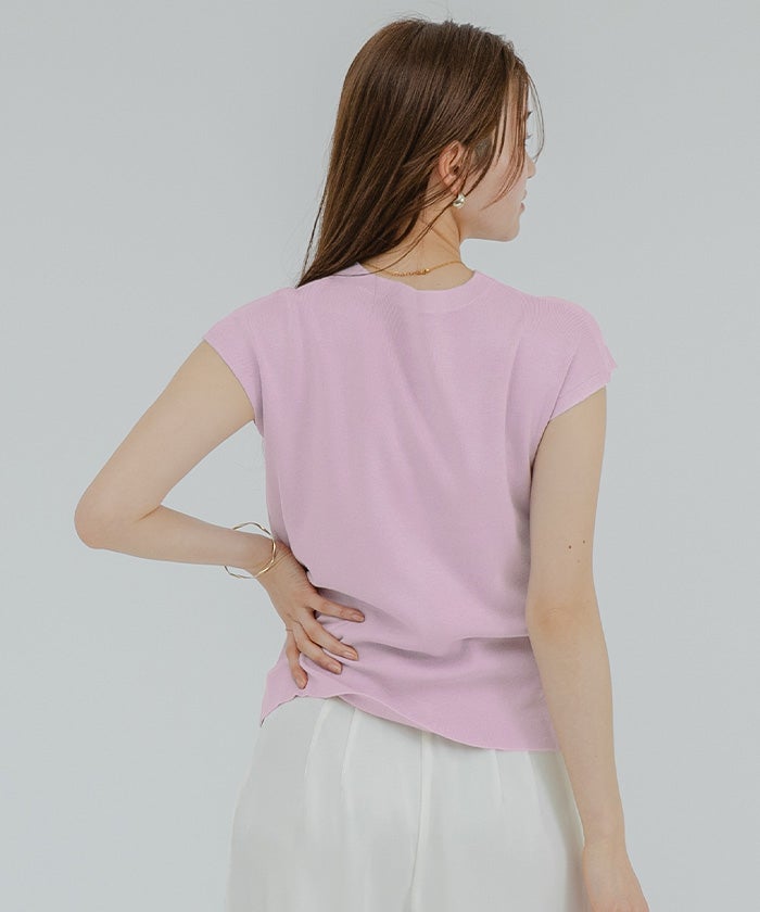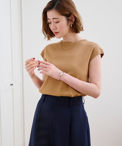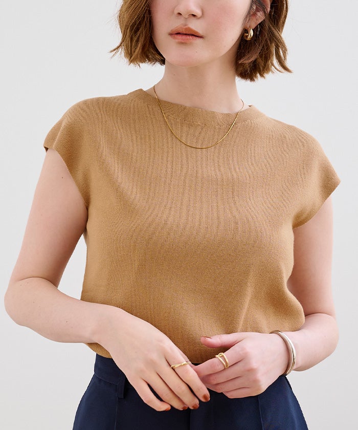使い勝手の良いベーシックなフレンチスリーブニットトップス。