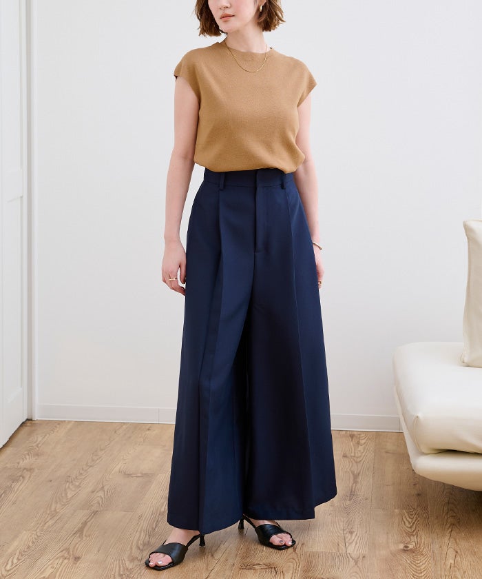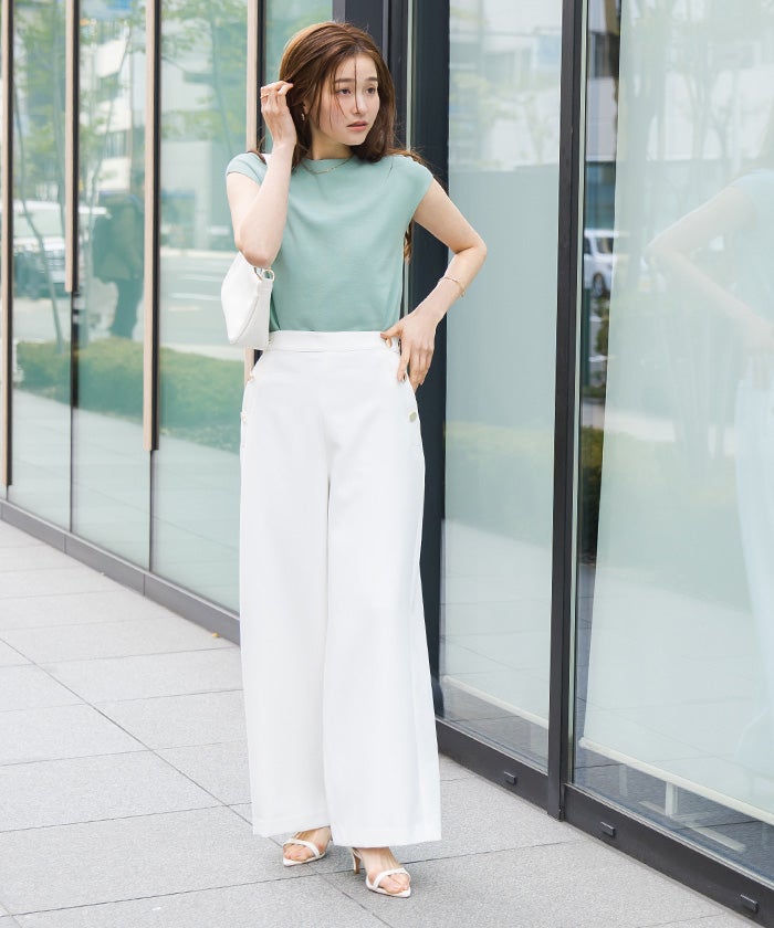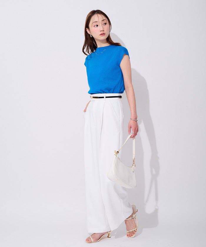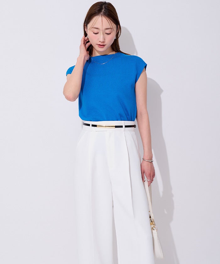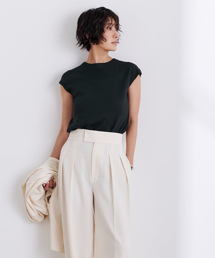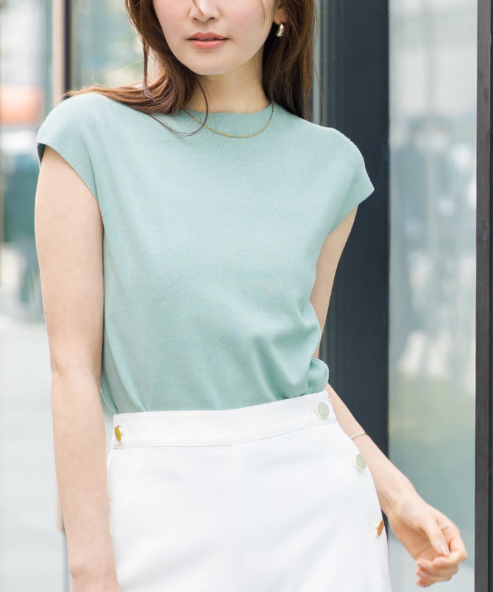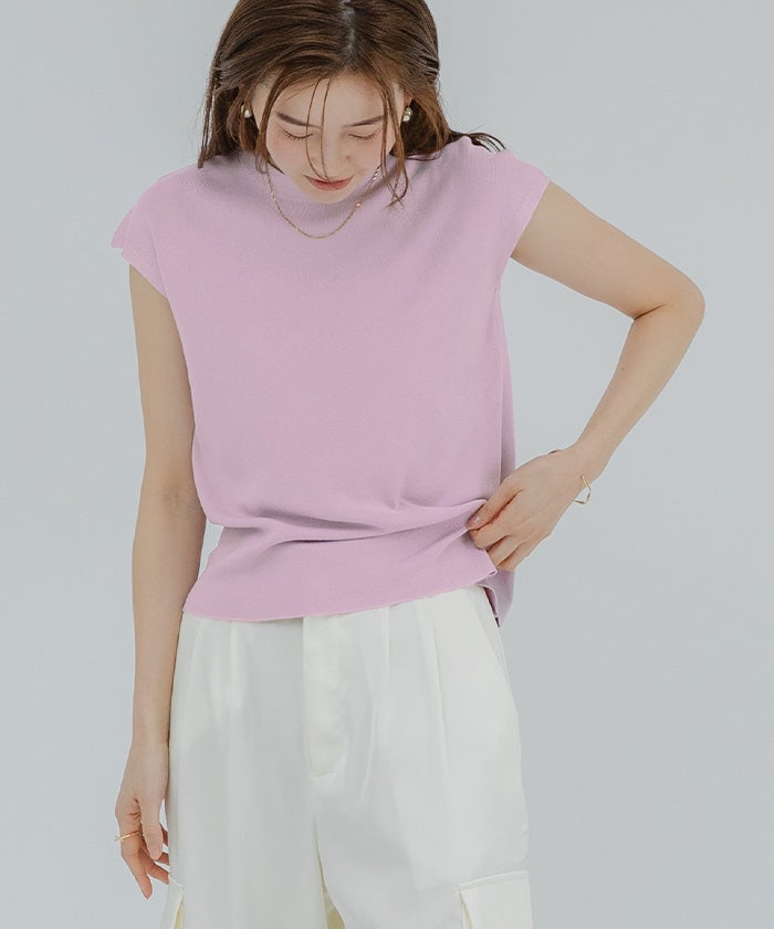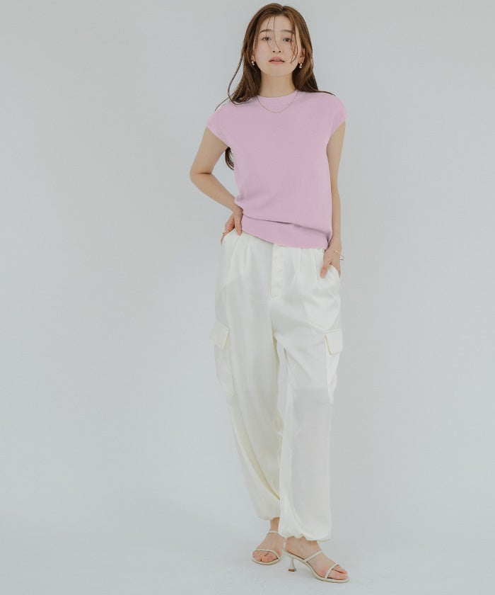 使い勝手の良いベーシックなフレンチスリーブニットトップス。