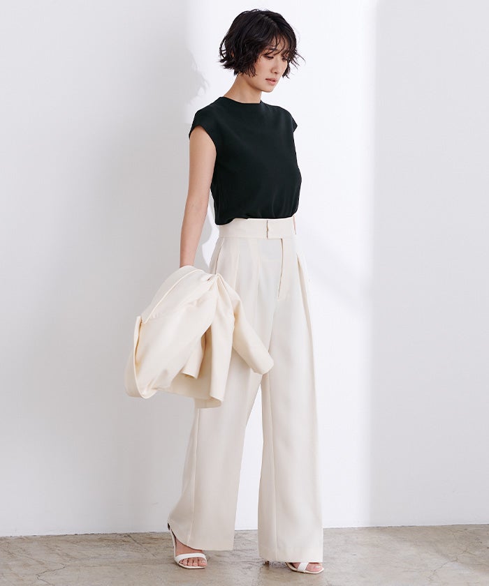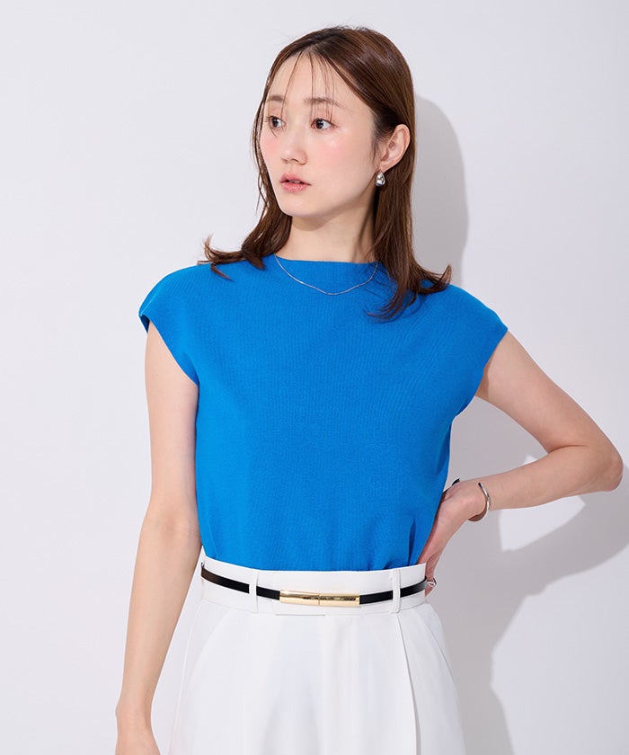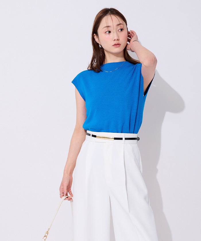 プチハイネックのデザインがモードさと女性らしさを演出してくれます。