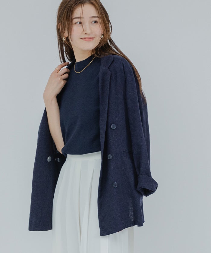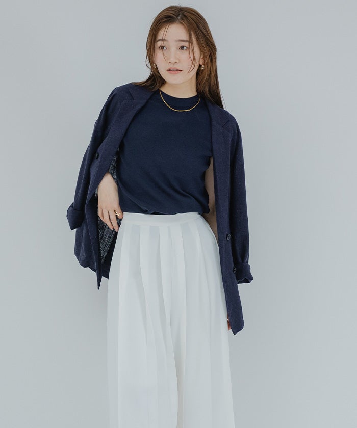 シンプルで1枚でもジャケットのインナーにもぴったりです。