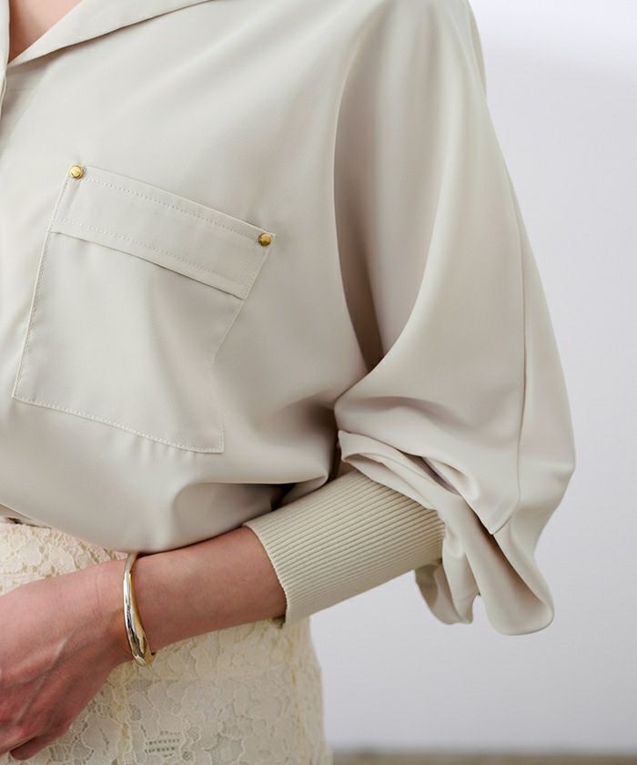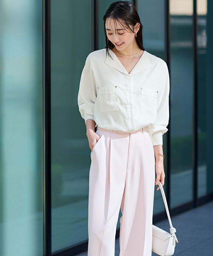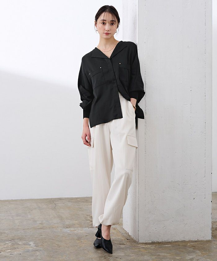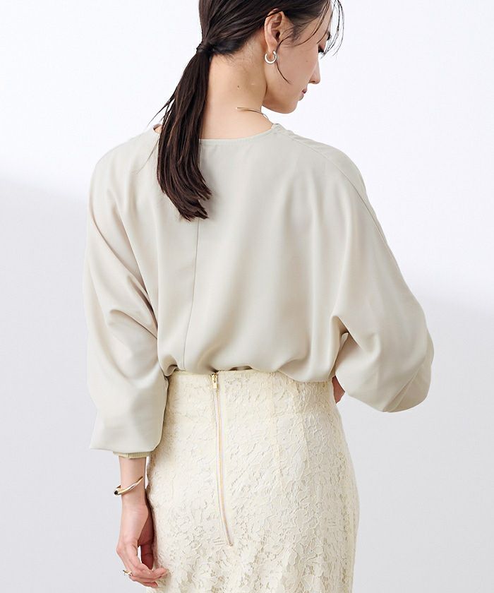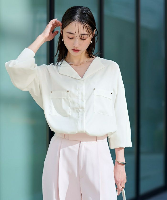 上品な光沢感ととろみ素材が魅力のブラウス。