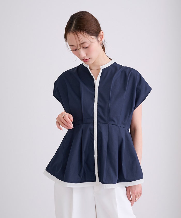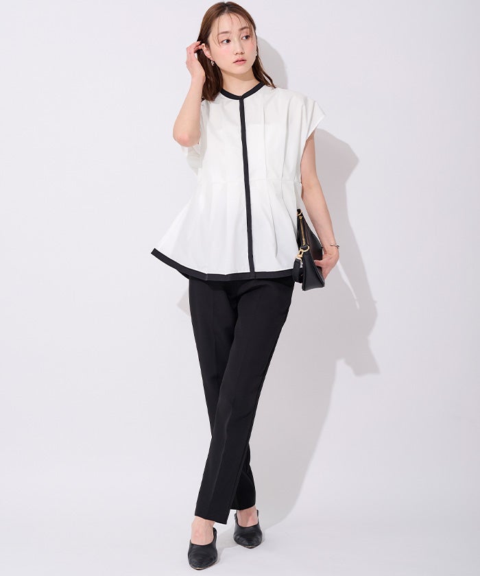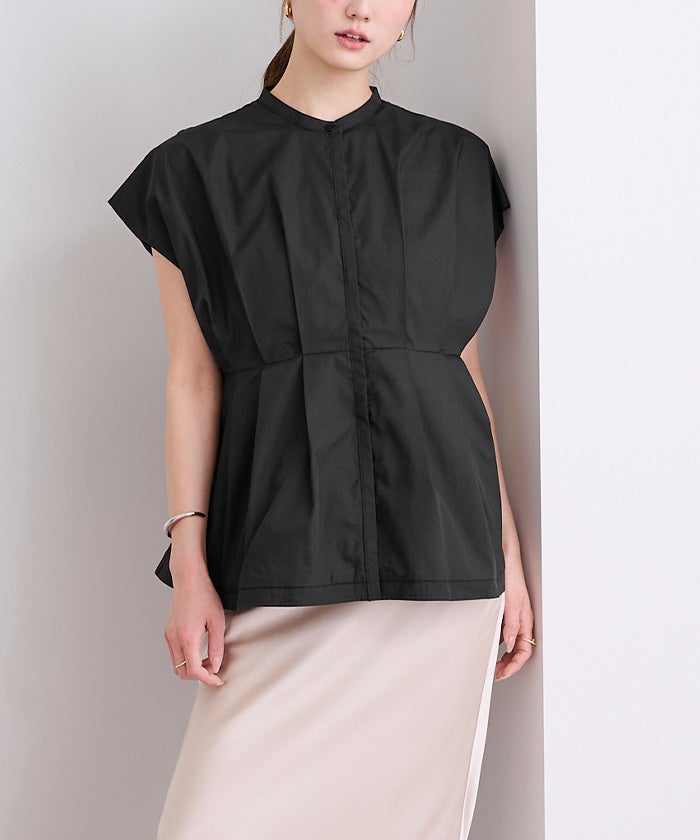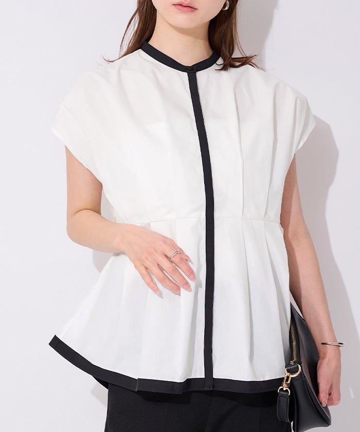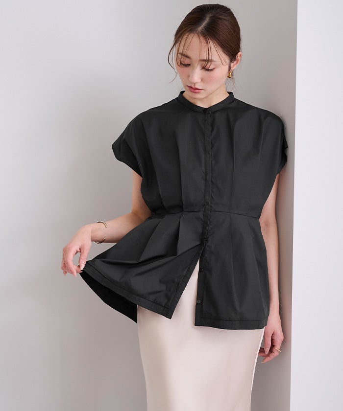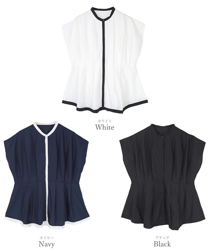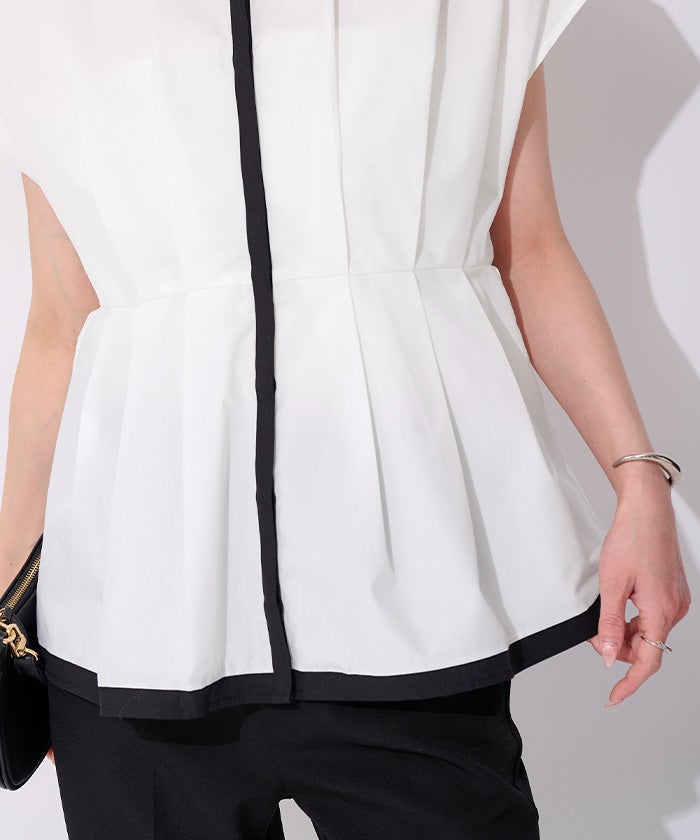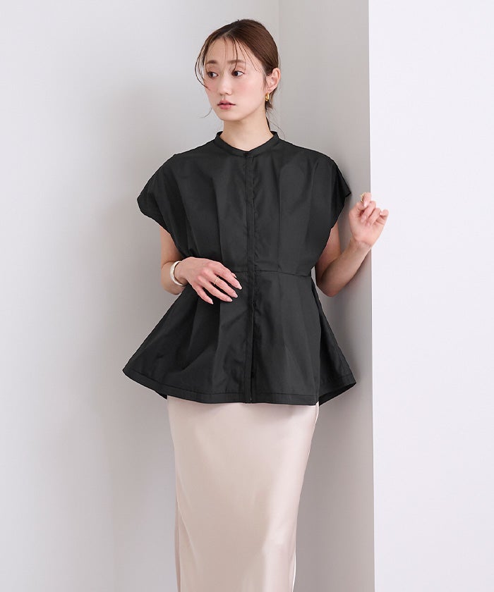 ウエストにタックを施した、立体感のあるペプラムブラウス。