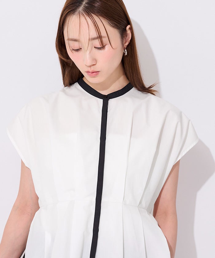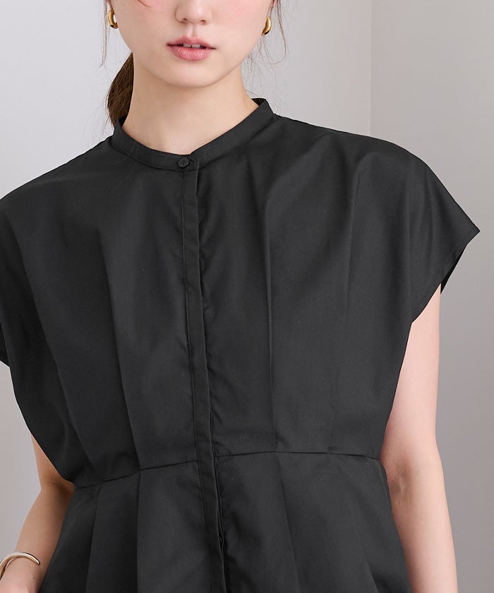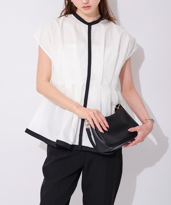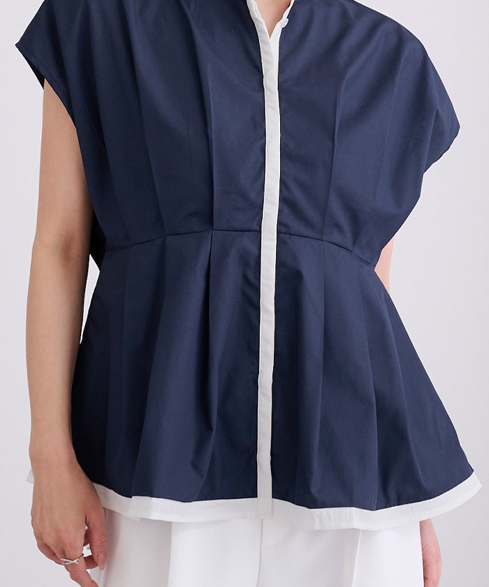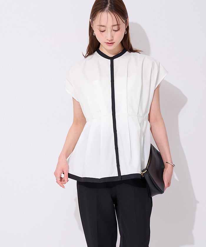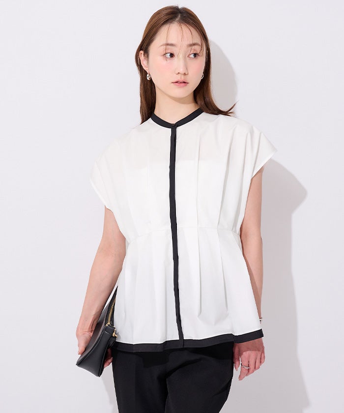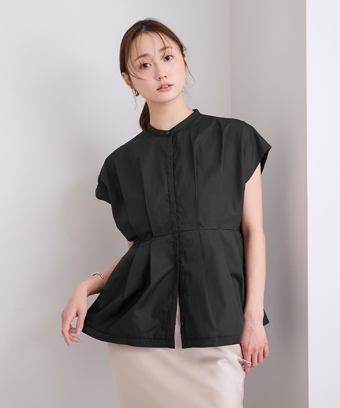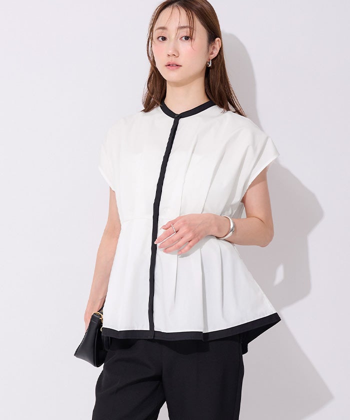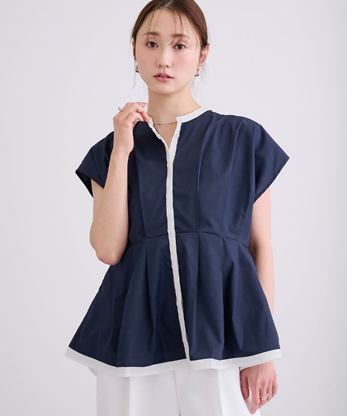 ウエストにタックを施した、立体感のあるペプラムブラウス。