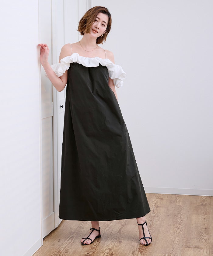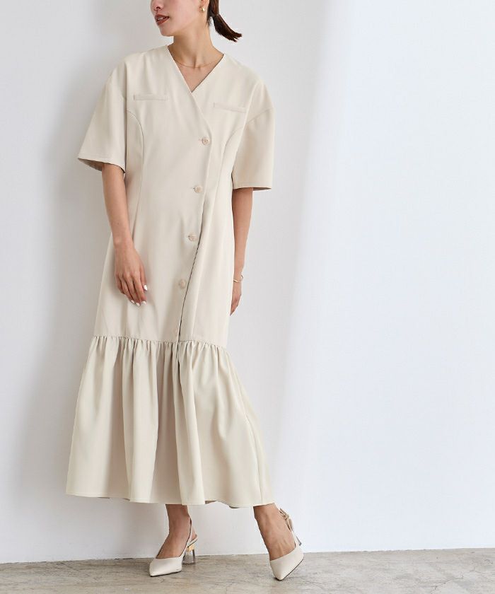 他の画像を見る 【春名亜美さんコラボアイテム】【洗える】【撥水】【機能性】【期間限定★SALE】 前後2wayウエストフリルデザインワンピース 定価 ¥ 7,909 のところ 価格 ¥ 6,327 税込 お気に入りに登録する