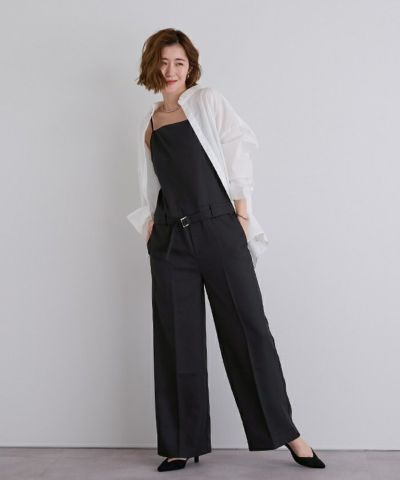 ローウエストに共布のベルトがついてシンプルながらもこだわりのあるデザインに仕上げました。