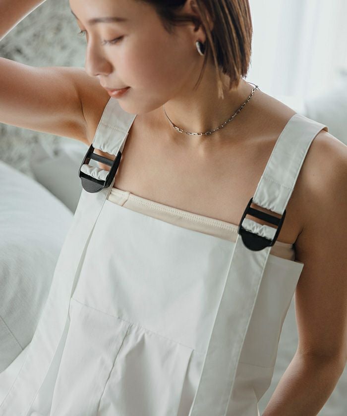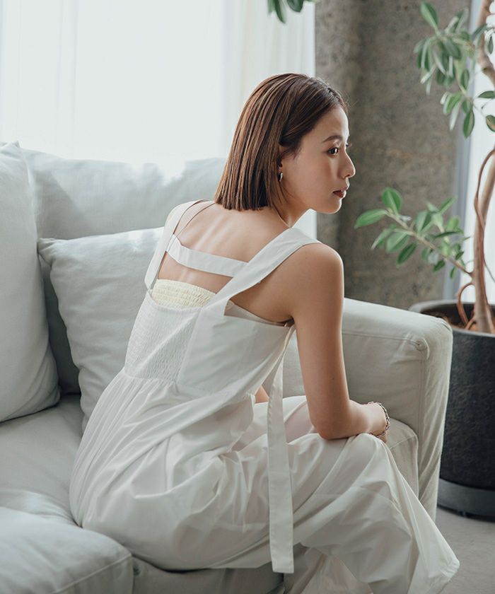 ウエストにはタックが入っていて、クリーンで大人な印象をプラス。