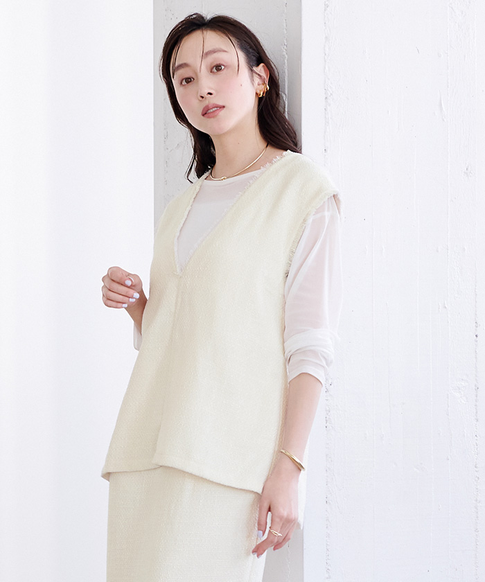 前後差があり、夏らしく前から足首が見える丈感に設定。
