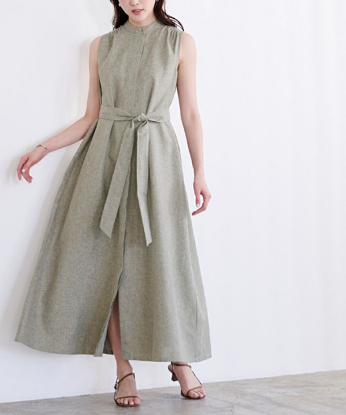 ベルト付きでウエストで結んでウエストマークもでき、ベルト無しでAラインのワンピースとしても着れる。