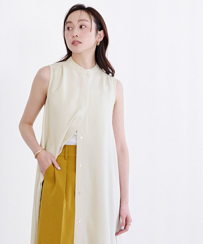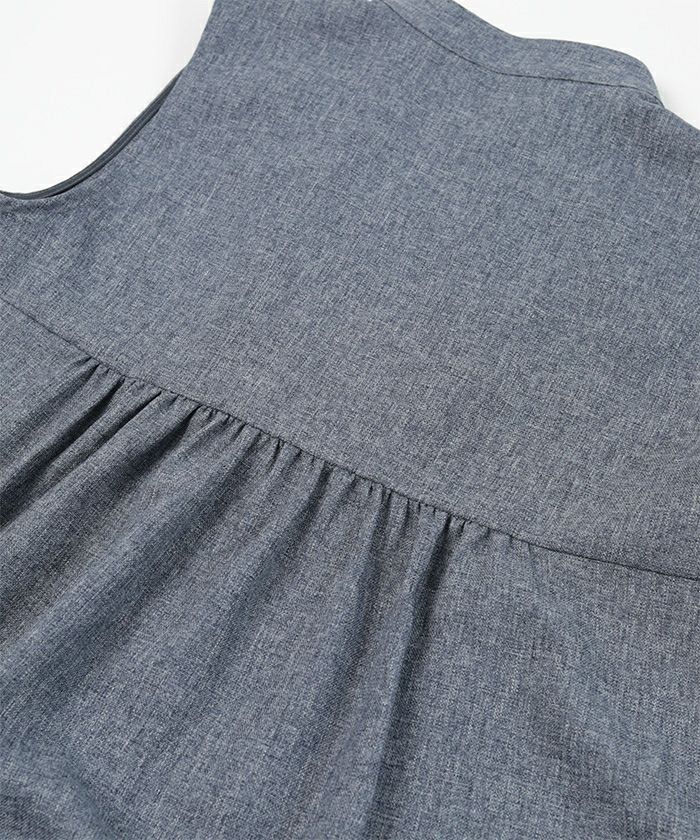 肩部分、後切替部分にギャザーを入れてふんわりしたシルエットに。