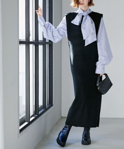 深めのアームホールでレイヤードしやすいニットワンピース。