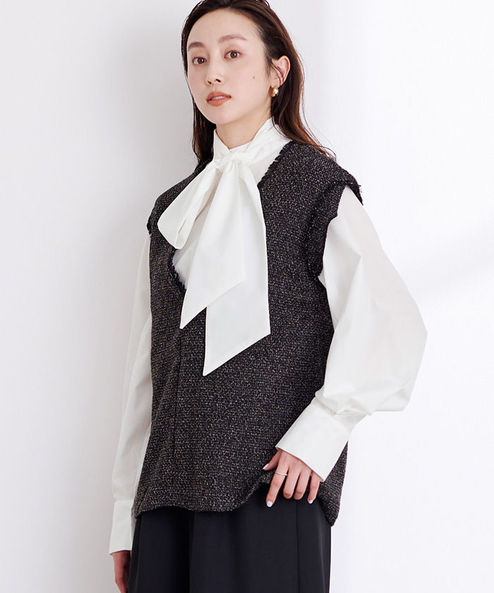 アームホールが大きめのボリュームスリーブブラウスなどとも合わせやすい。