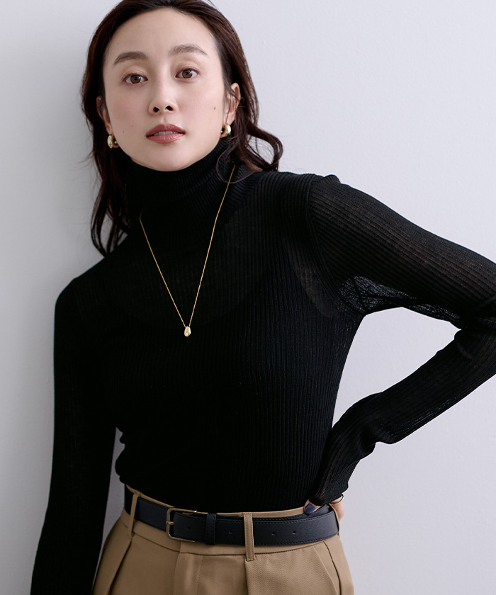 ・身体の線を拾いすぎず、ブラウスやニットなどレイヤードして着用頂くのがおすすめです。