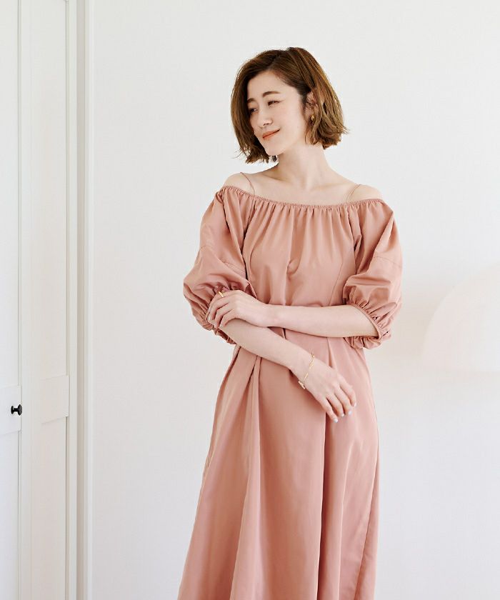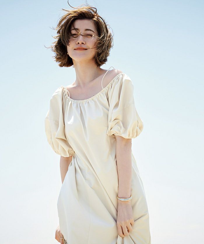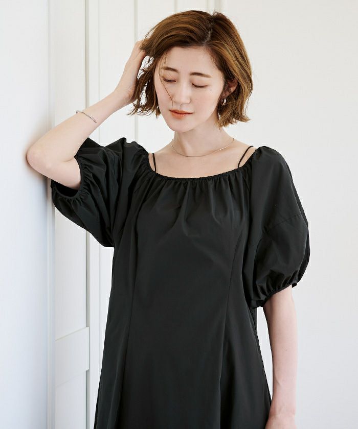 ファスナー無しで着脱できるサイズ感に調整してラクに着れるワンピースに。