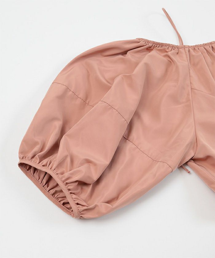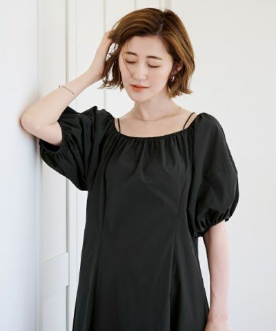 ギャザーが入った丸みのある袖に、身頃部分は少しウエストシェイプしたシルエットに仕上げました。