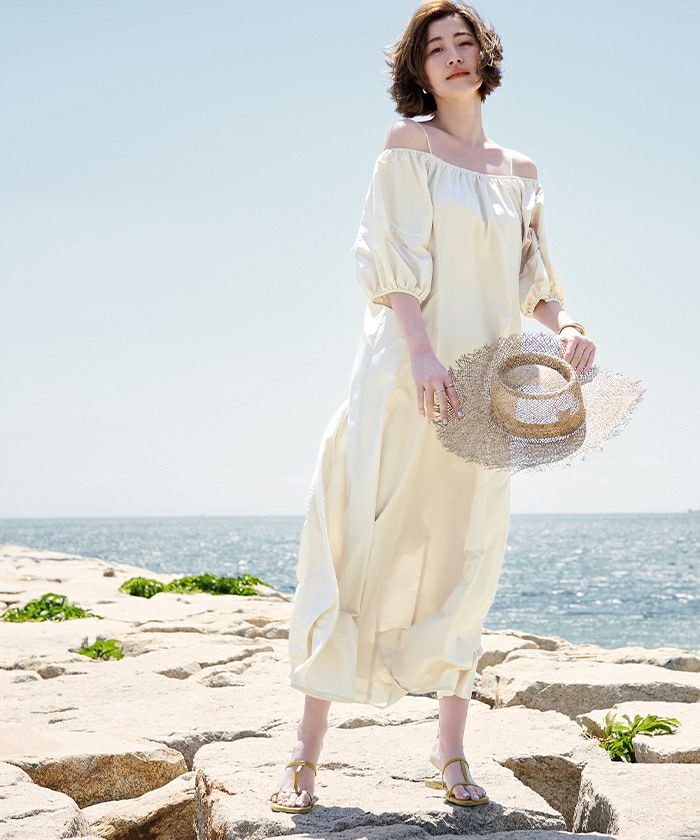 今年らしいオフショルダーでズレ防止になる肩紐をつけました。