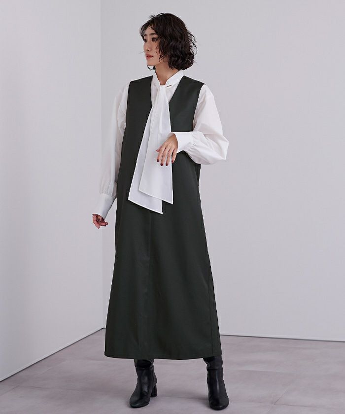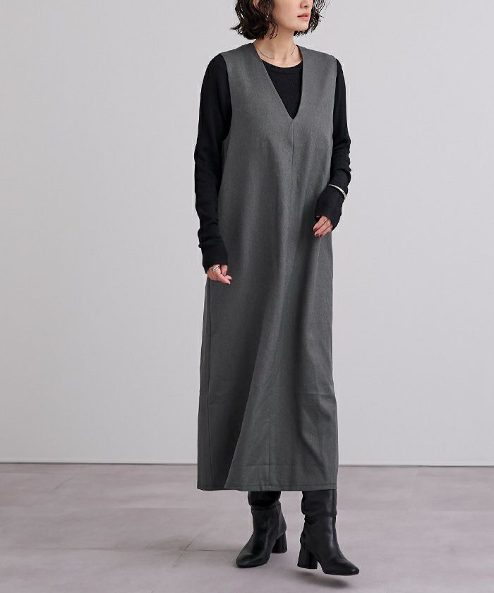 ゆったりとした作りで楽チンにも関わらずIライン効果ですっきりみえるワンピースです