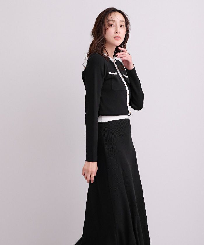 バイカラーポケットデザインニットワンピース