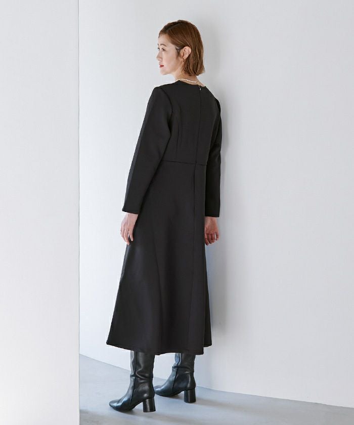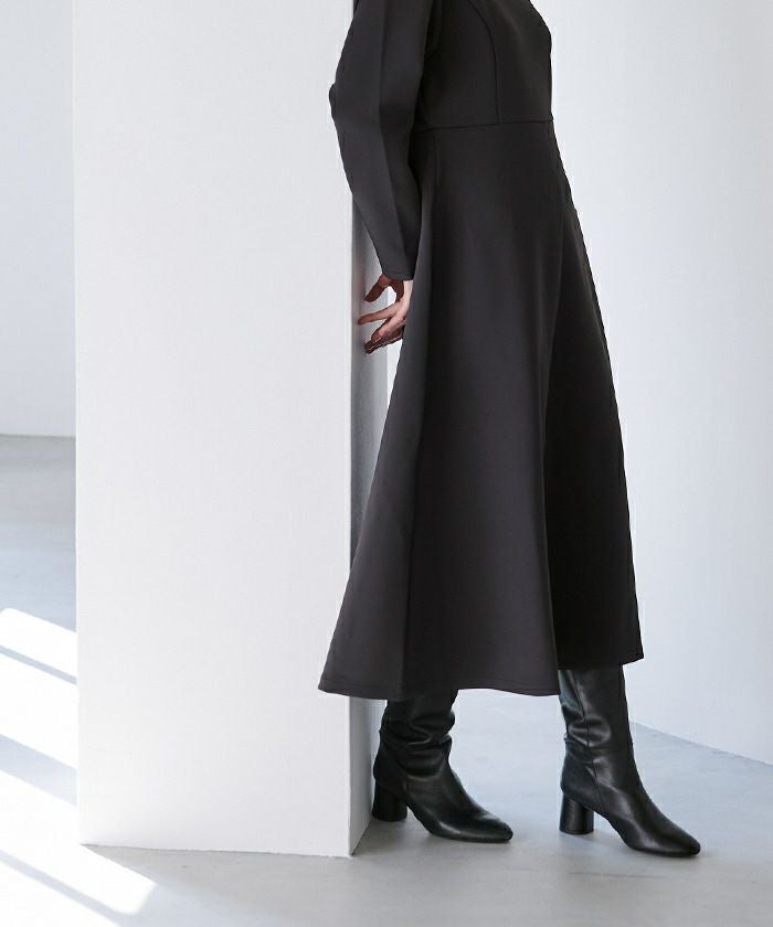 ハリ感のあるボンディング素材で綺麗なフレアシルエットが作り出されるワンピース。