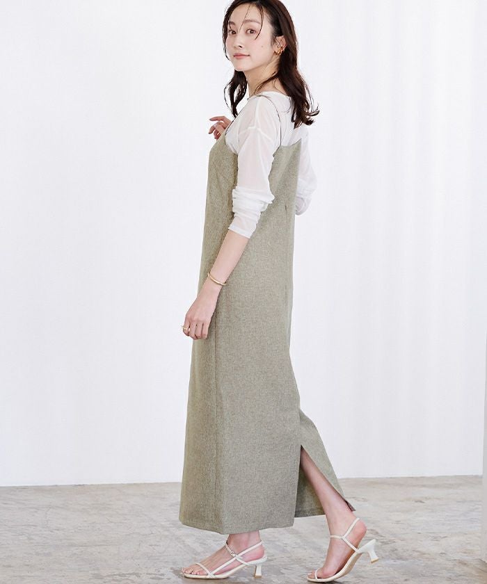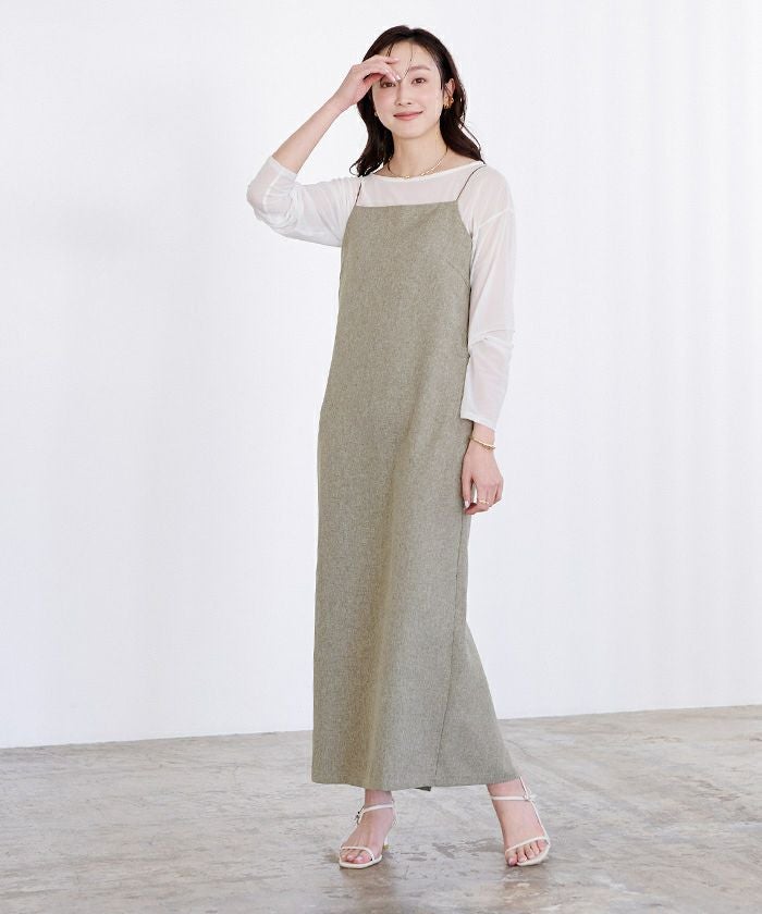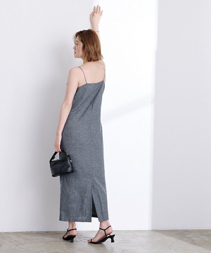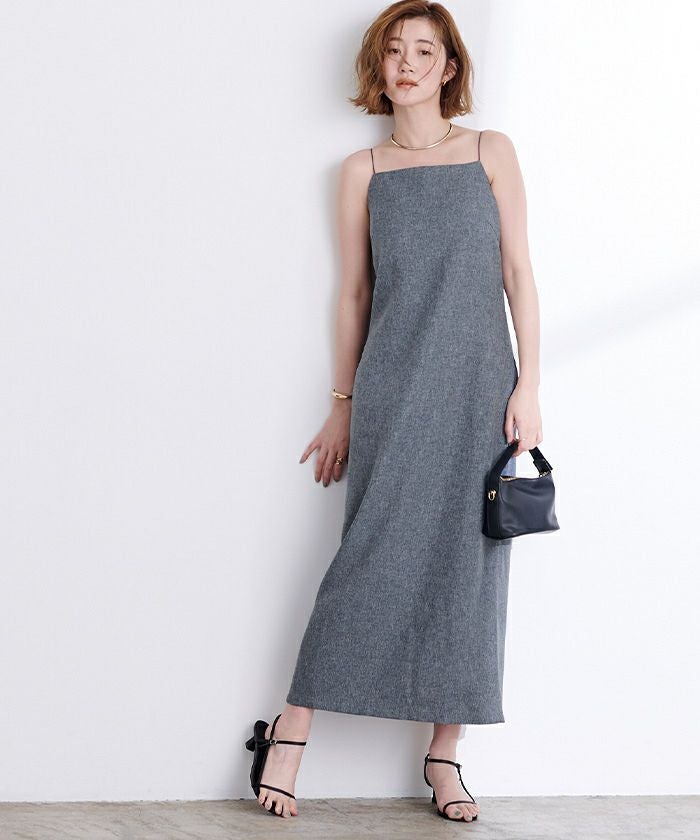 華奢な肩紐で女性らしいキャミワンピース。