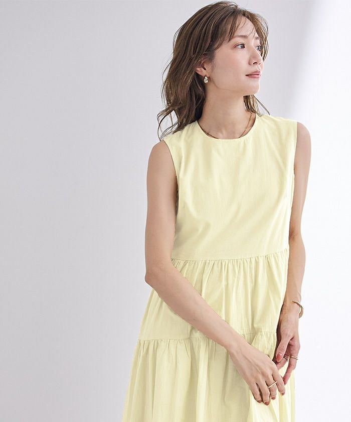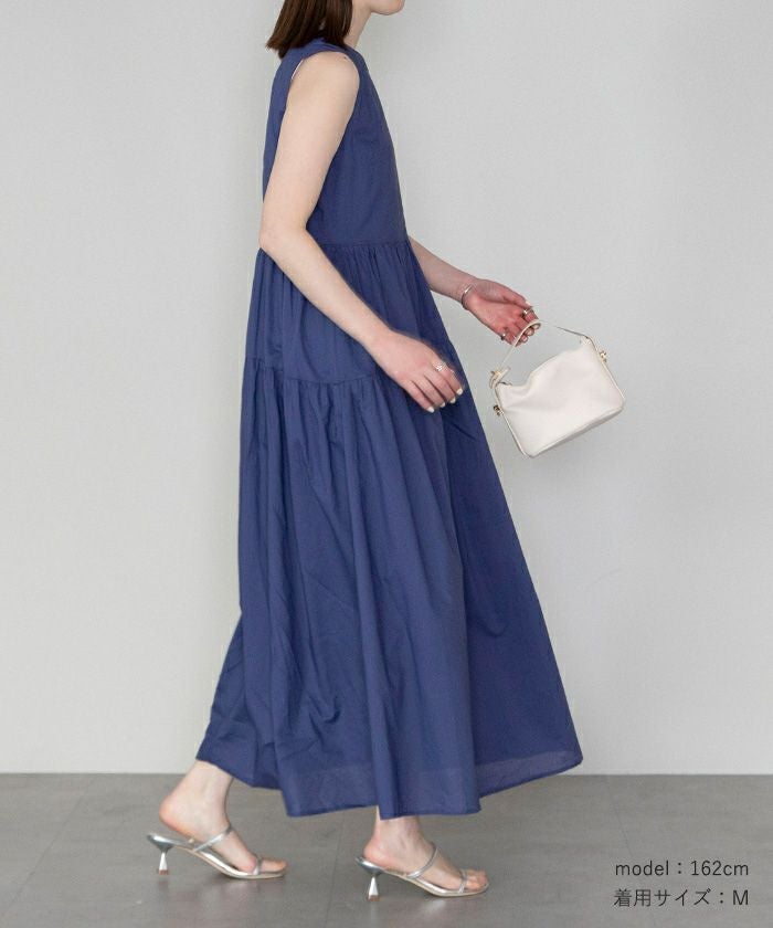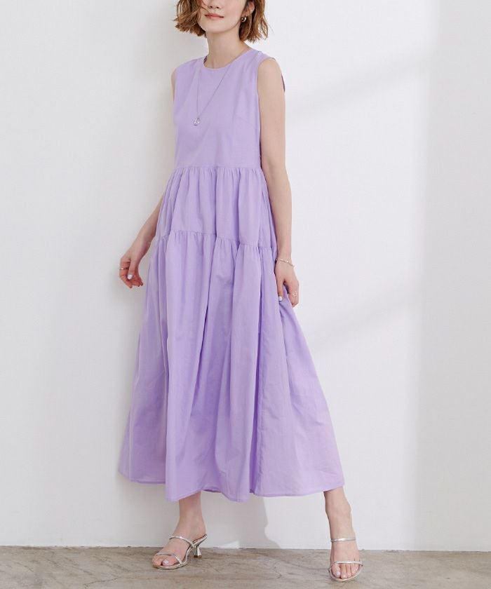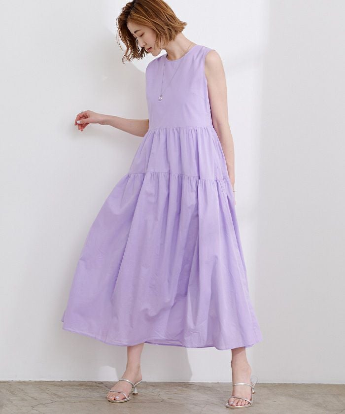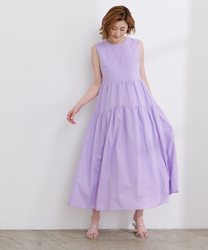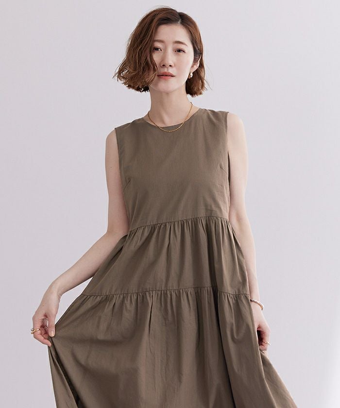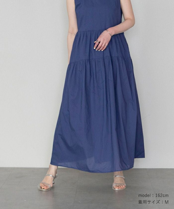 コットンクルーネックティアードワンピース