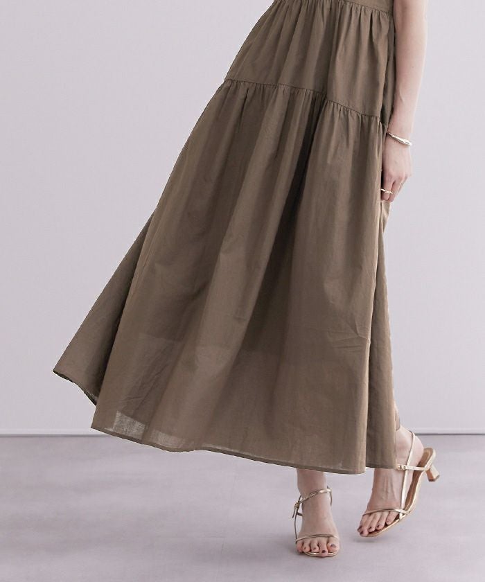 コットン素材で程よい膨らみのあるティアードデザインが、甘すぎない大人の可愛らしさを演出してくれます。