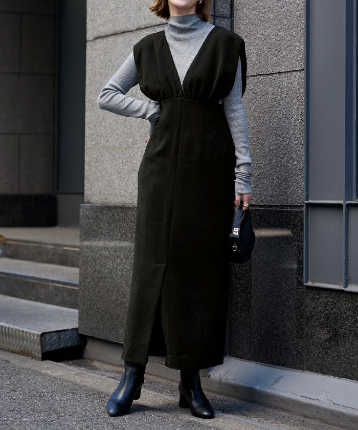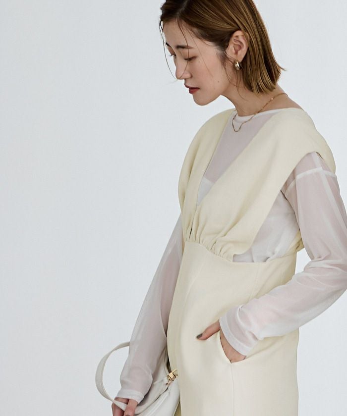 ギャザーデザインハイウエストサロペットスカート