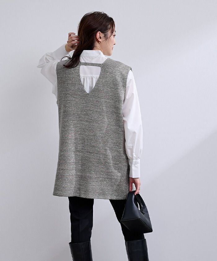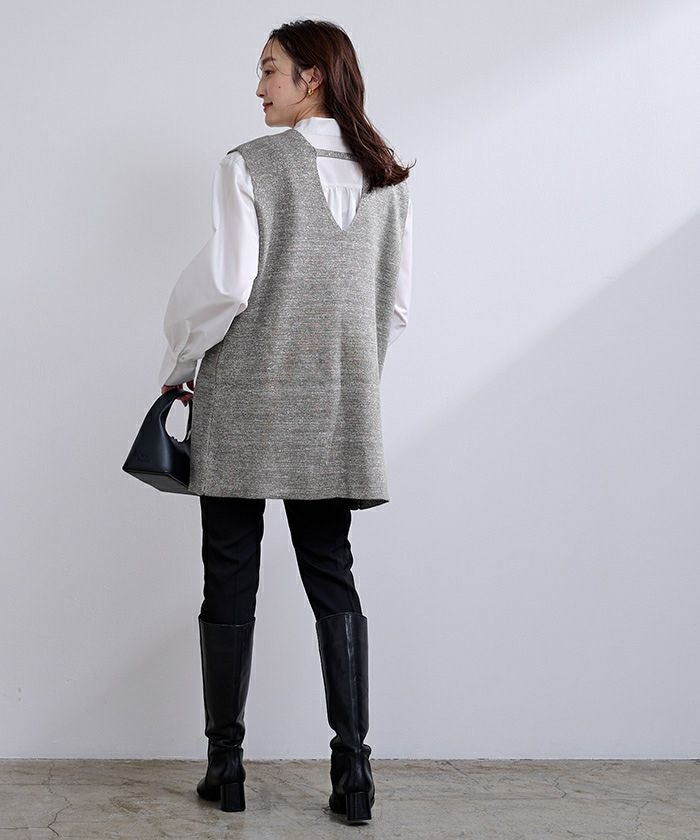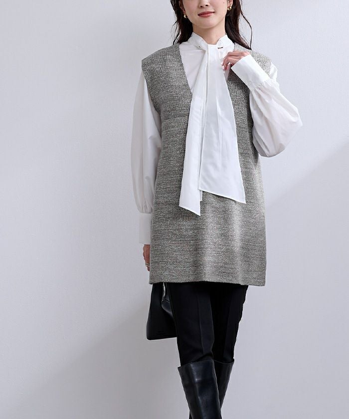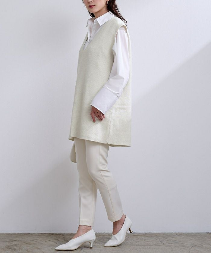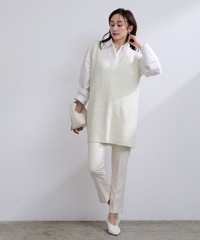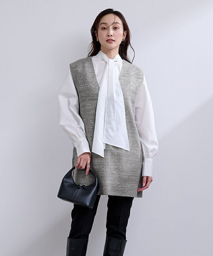 ・身体の線を拾いすぎず、ブラウスやニットなどレイヤードして着用頂くのがおすすめです。