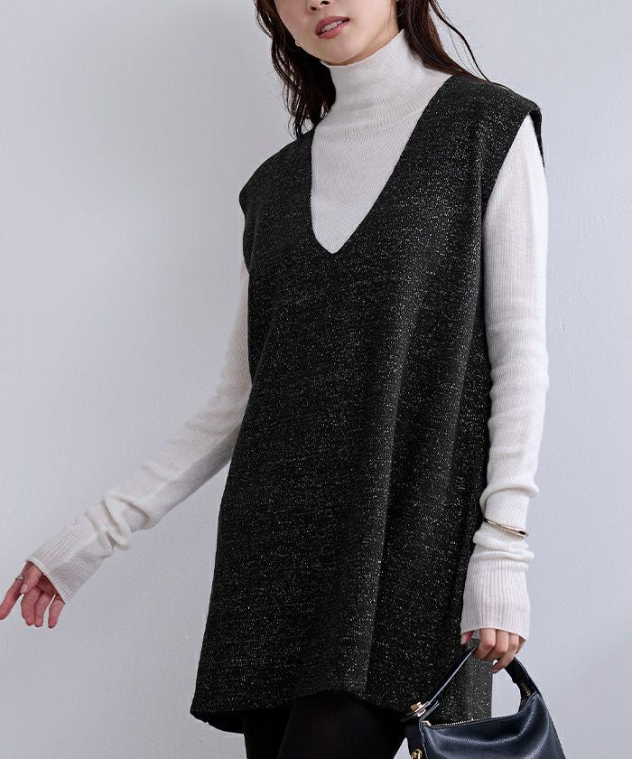 ミラノリブニットラメワンピース