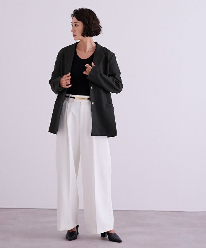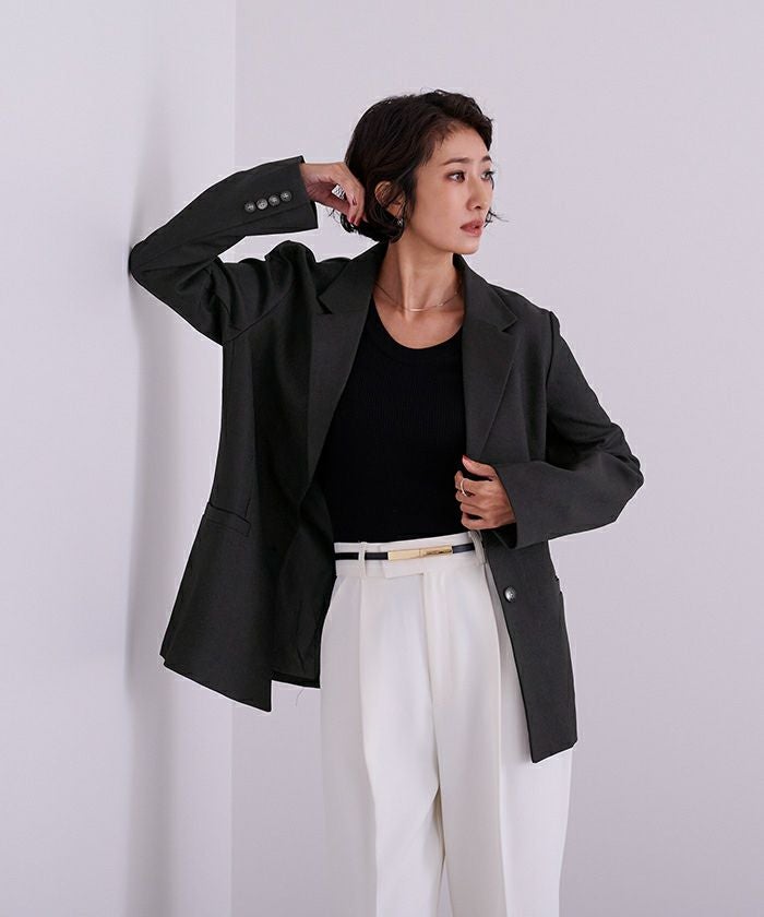 シングルジャケットで程よくカジュアルな仕上がりに。
