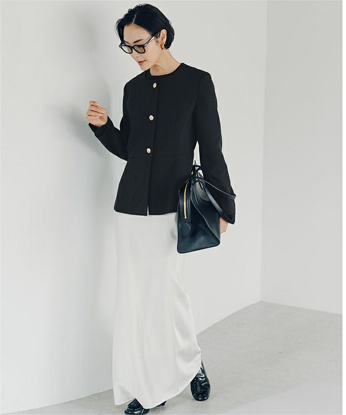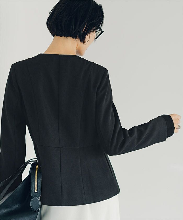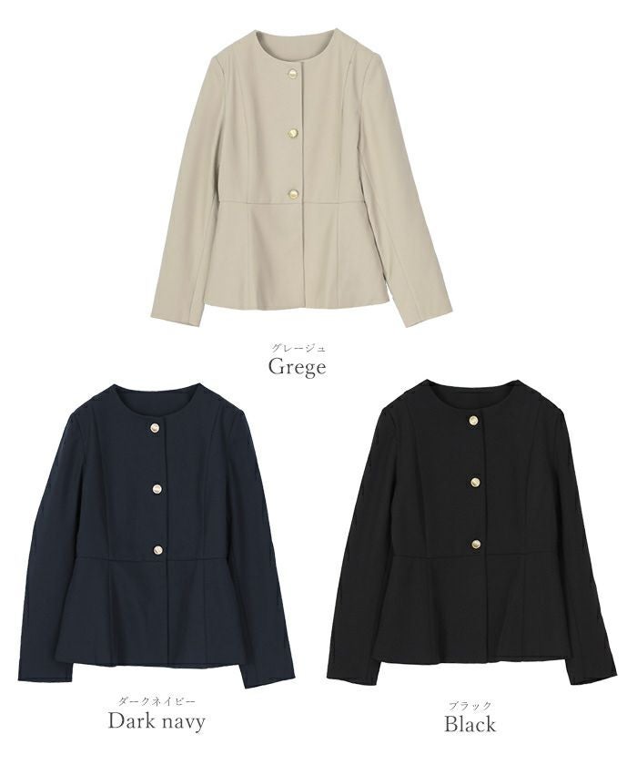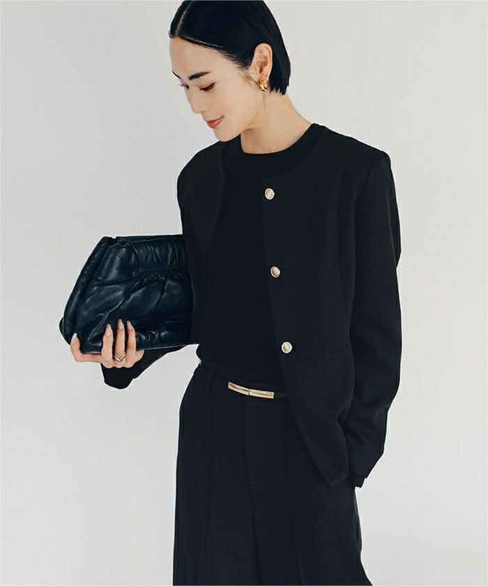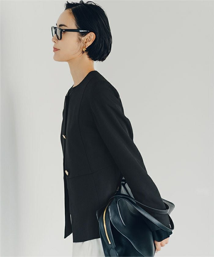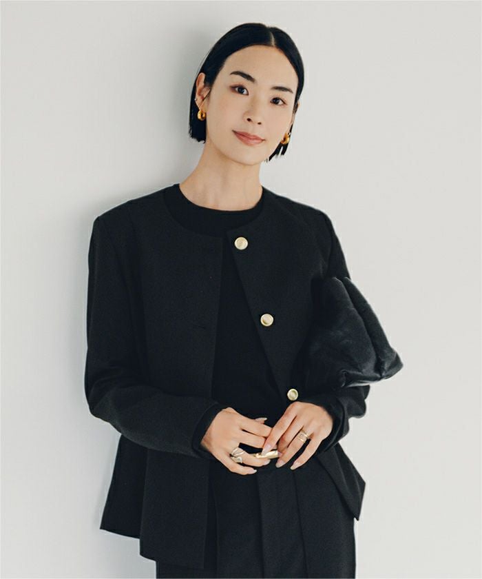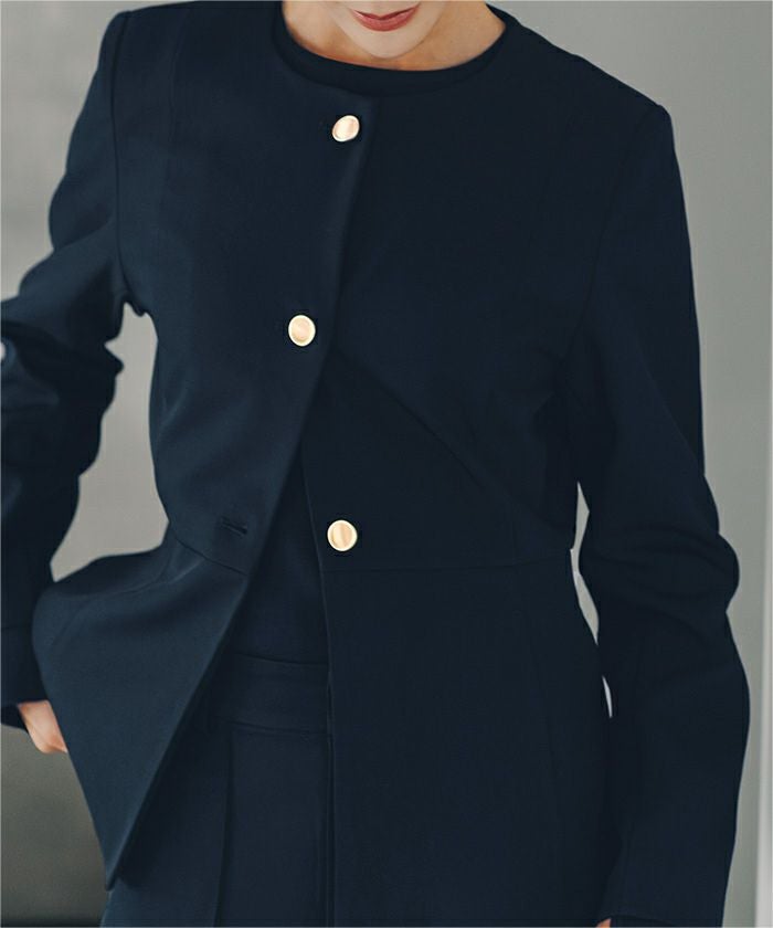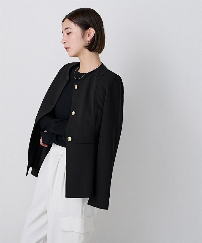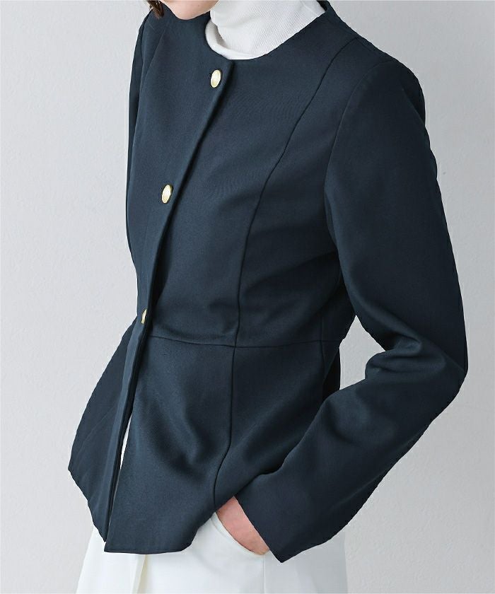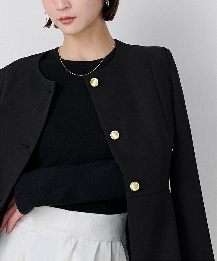 ゴールド釦が上品なノーカラージャケット