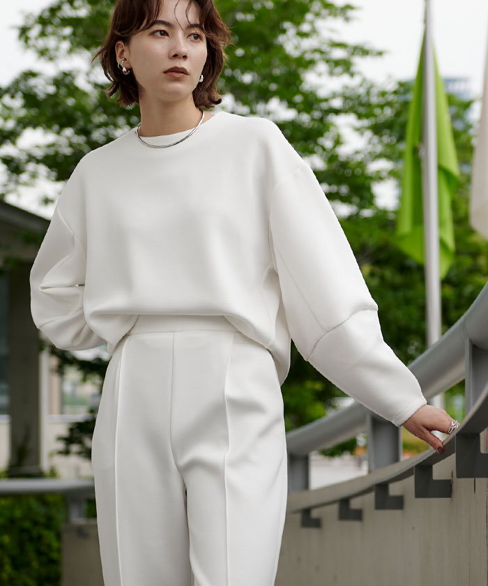 同素材シリーズのボトムスと合わせたセットアップ風の着用も可能。