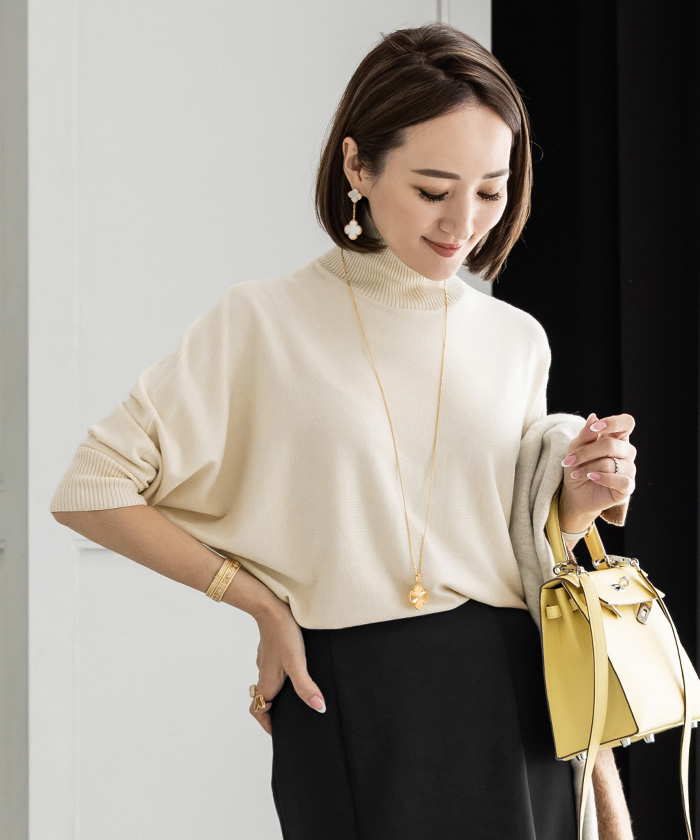 スカート、パンツスタイルはもちろん、ワンピースにも合わせやすい。