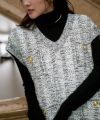 ベーシックなシルエットをツイードニットにした大人ベスト。