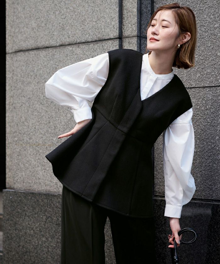 ダーツと切り替えがあり、立体感あるシルエットがウエストを綺麗にみせてくれます。