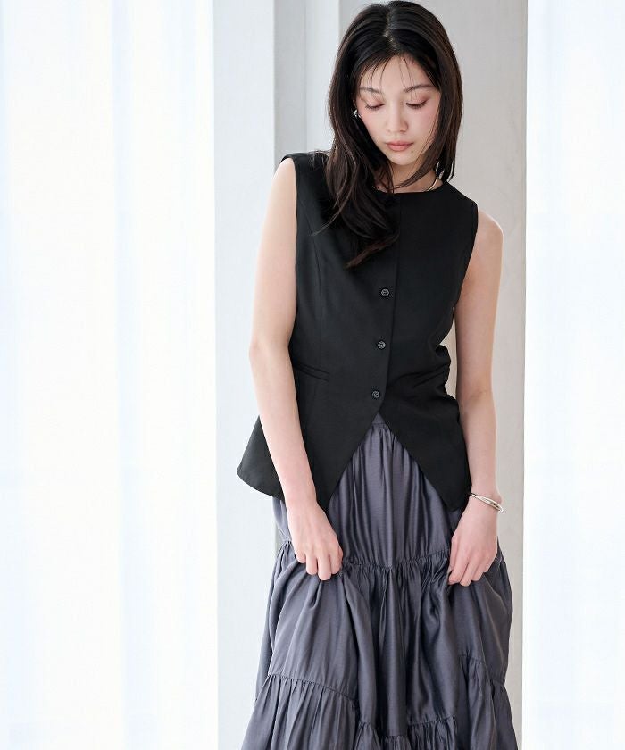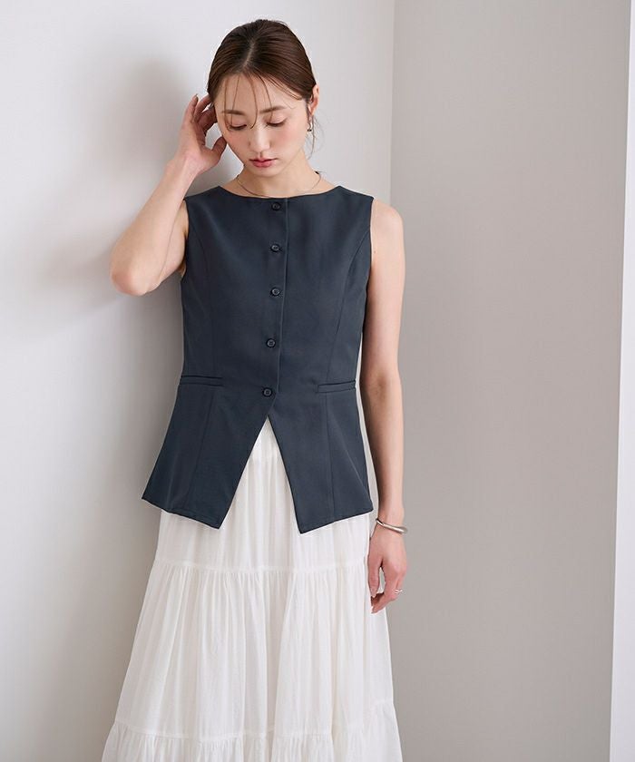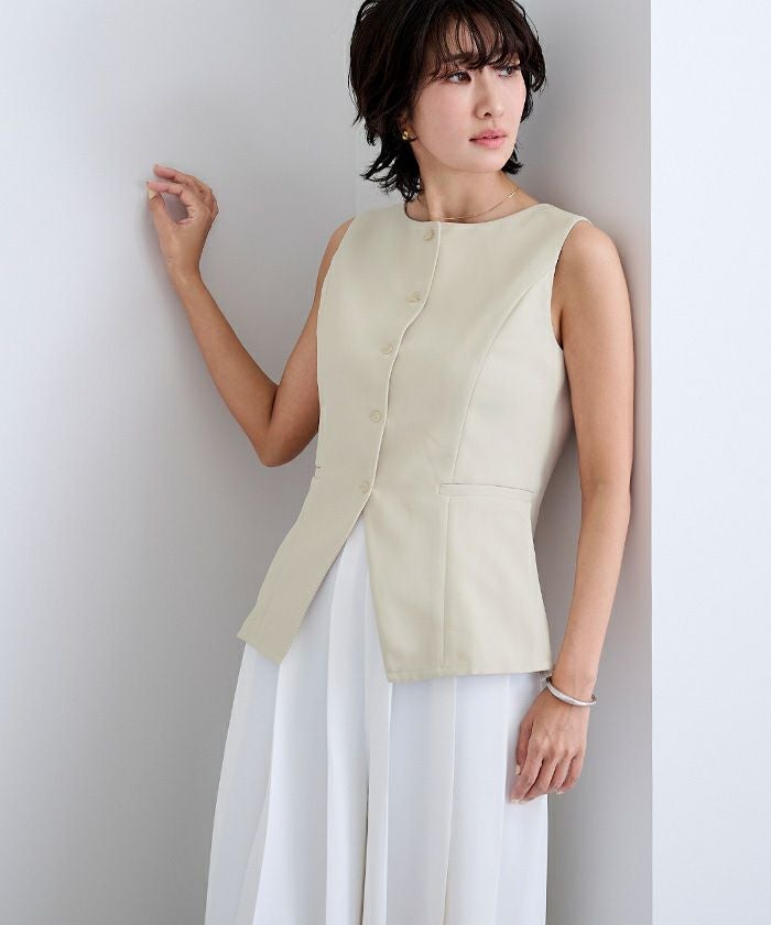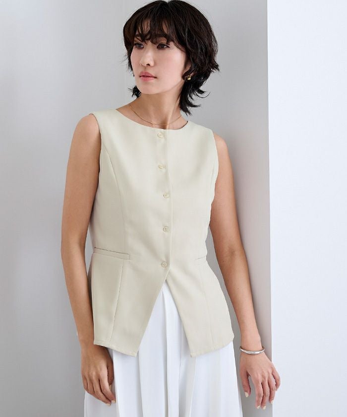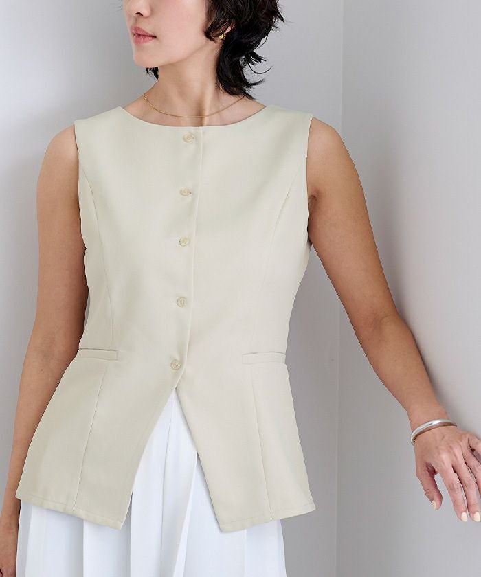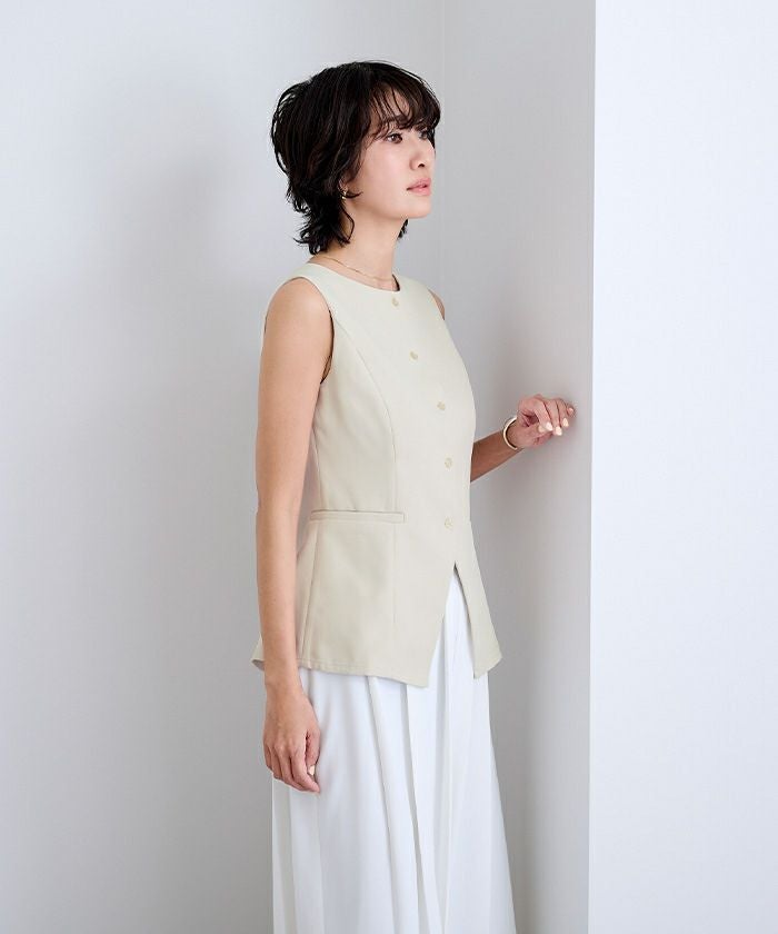 すっきりとしたシルエットが印象的な、ノースリーブトップス。