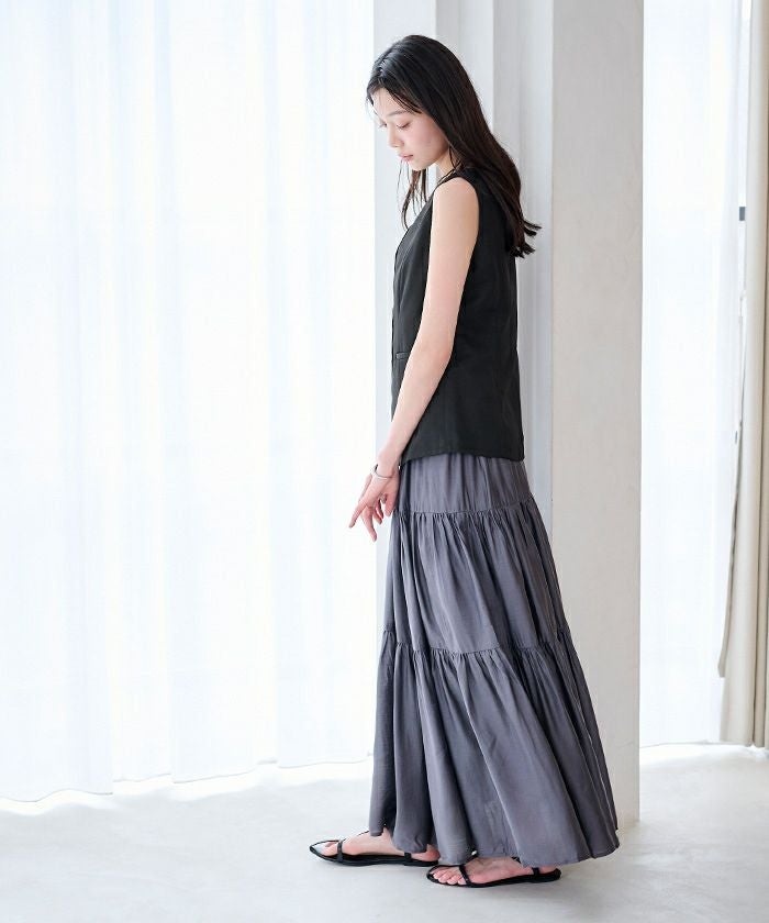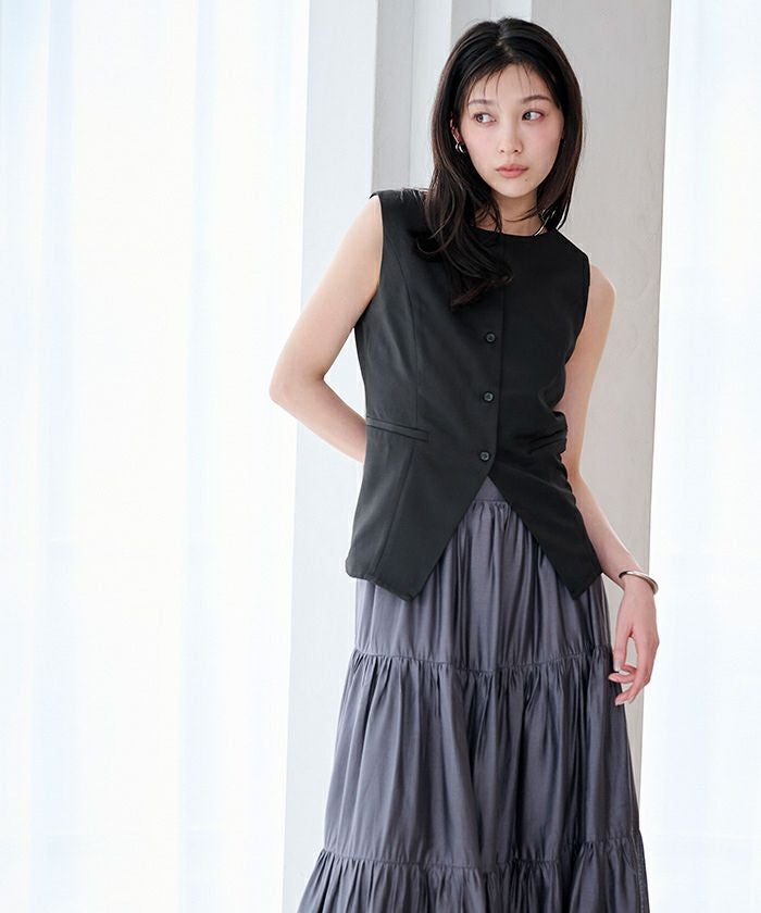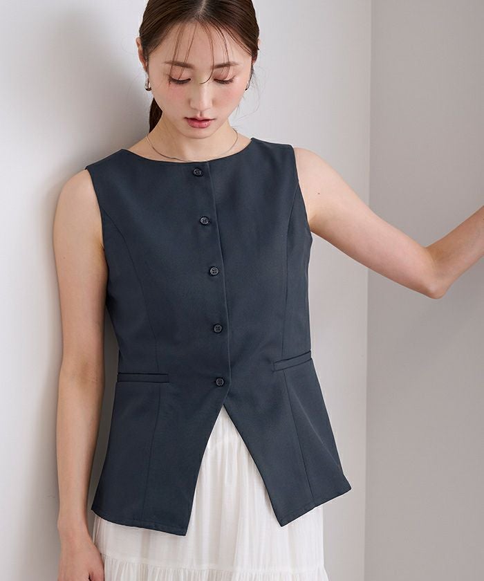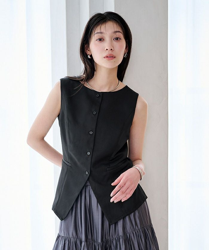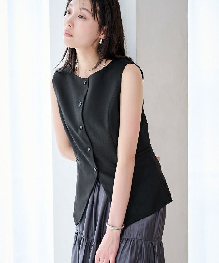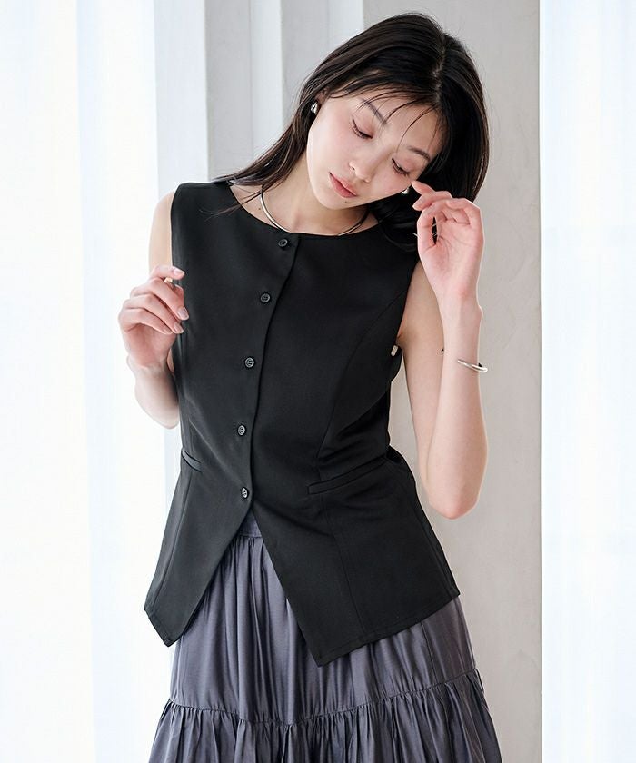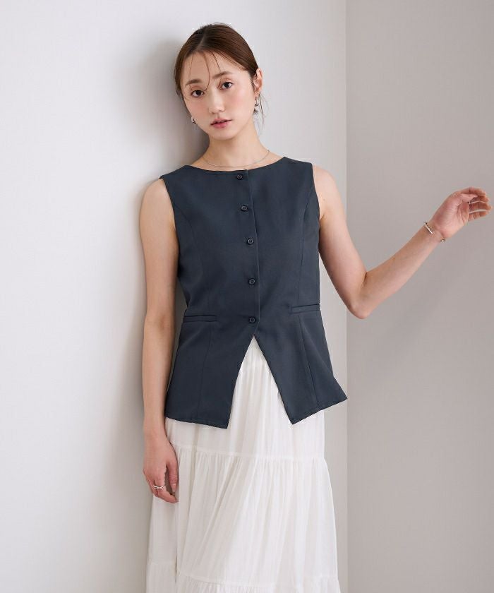 すっきりとしたシルエットが印象的な、ノースリーブトップス。